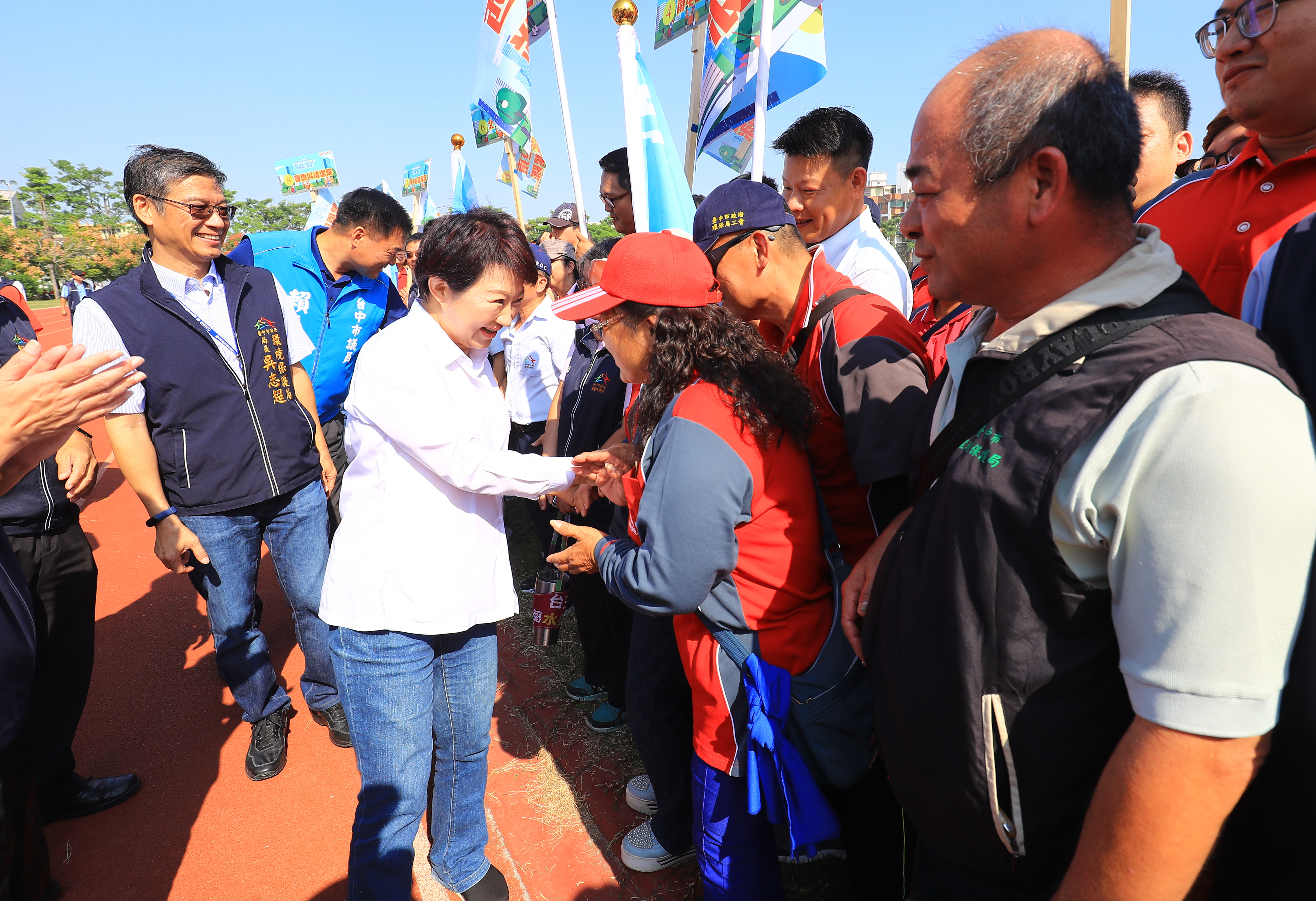 今日清潔隊員日慶祝活動,包括市長盧秀燕、環保局長吳志超、環保署中區環境督察大隊長李金福、民政局長吳世瑋、多位區長皆到場向清潔隊員致意;市議員李中、賴義鍠、朱元宏、李天生、沈佑蓮等人也到場共襄盛舉。