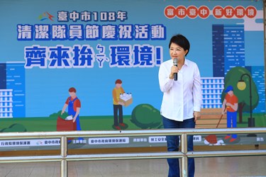 10月25日是清潔隊員節,台中市政府環保局今(23)日在太平區體育場舉行慶祝活動,各區清潔隊員大秀創意,將平凡無奇的塑膠袋等回收物,剪裁設計成主題服裝。市長盧秀燕到場向每位隊員致敬,肯定他們是維護市容環境的城市英雄,市府已爭取4千多萬元補助經費,將讓老舊的隊部環境煥然一新。