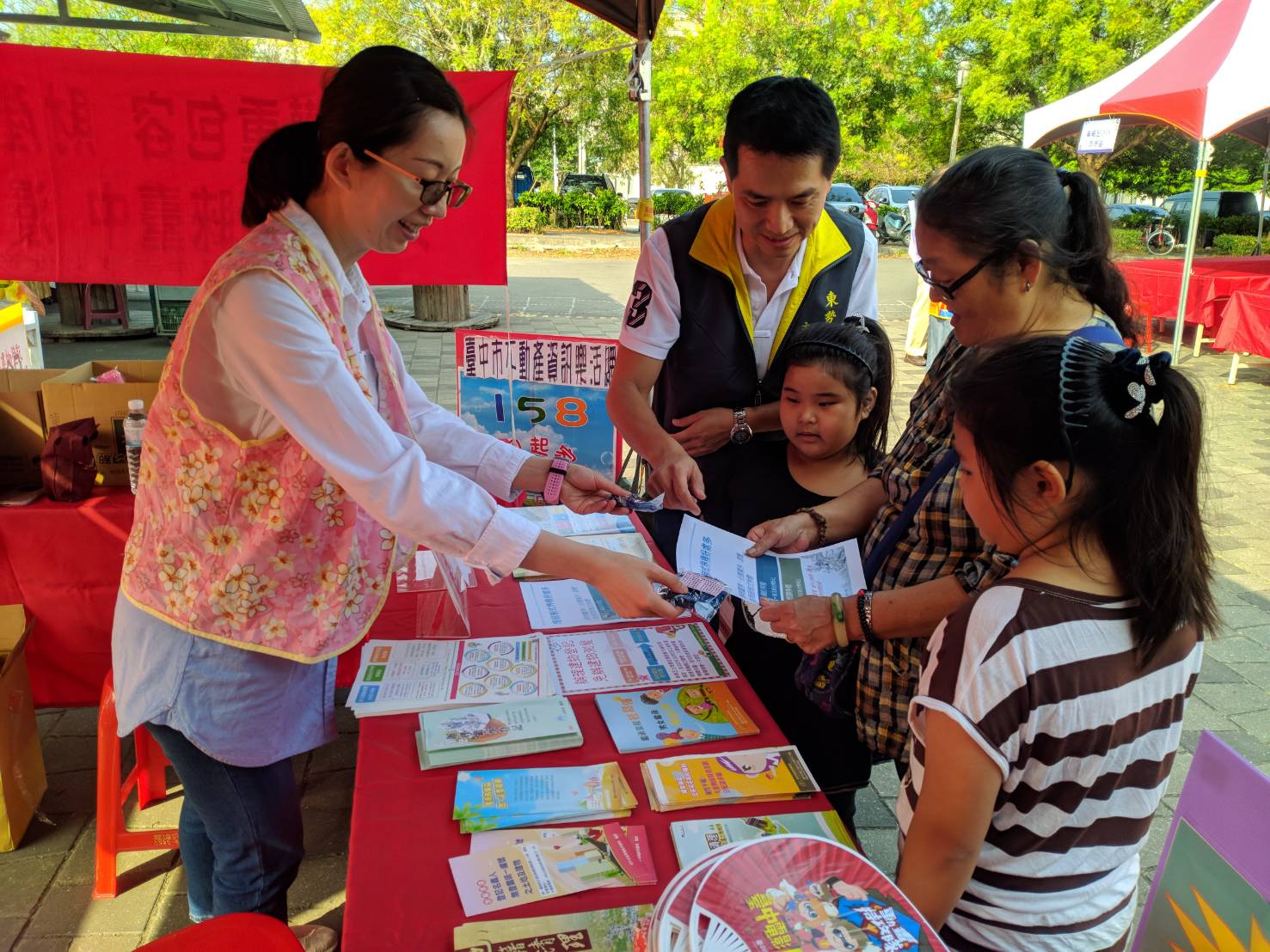 地政局指出,東勢地政事務所今日配合國稅局東勢稽徵所租稅宣導活動,也在東勢客家文化園區設置攤位,以有獎徵答互動方式,宣導土地登記、測量、實價登錄等業務法令及各項地政便民服務,並受理民眾土地問題諮詢及收件。