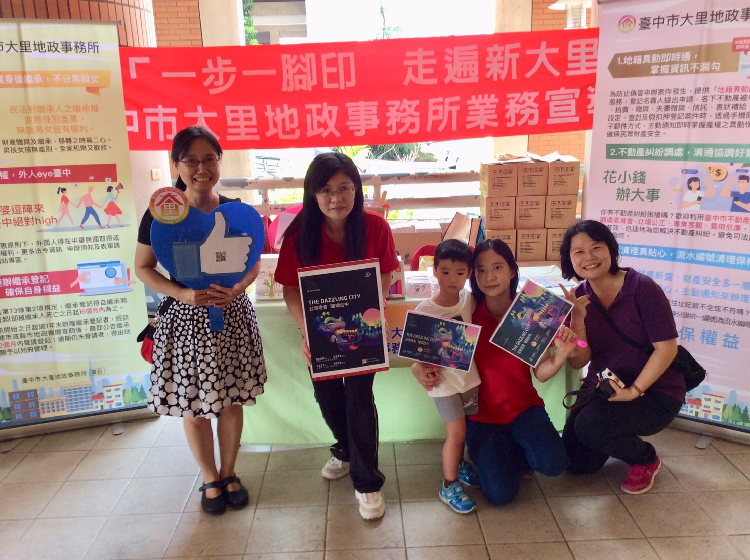 此外,大里地政事務所與地方稅務局大屯分局今日也在中興大學附屬高中,舉辦「一步一腳印 走遍新大里」法令宣導活動,宣傳包括繼承、兩性平權、地籍清理以及平等互惠原則下外國人如何取得本國土地等產權法令規定,並提供地政法令諮詢及地籍異動即時通收件服務,搭配互動遊戲、闖關及摸彩等,讓民眾更深入瞭解相關地政服務。
