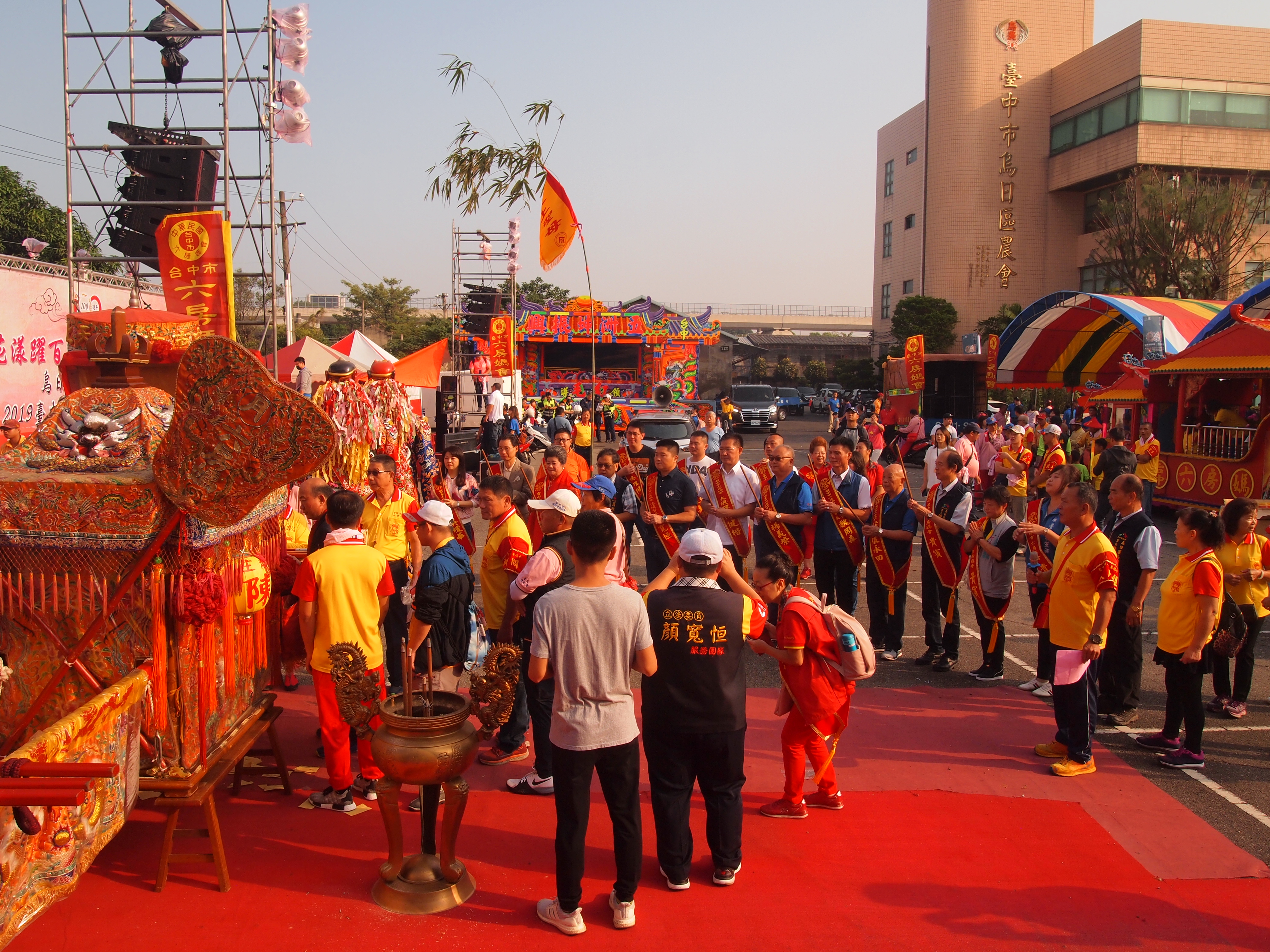 台中六房媽每年都會在烏日進行遶境,今年結合烏日區農會百年慶,今(26)日起一連兩天舉行「2019六房媽祖觀光文化節」活動,除集聚大庄媽祖等各宮廟媽祖神尊,甚至由六房媽分靈的新加坡萬天府媽祖也回娘家來,帶領信眾遶境烏日地區溪南、溪北18個里,場面壯觀熱鬧。