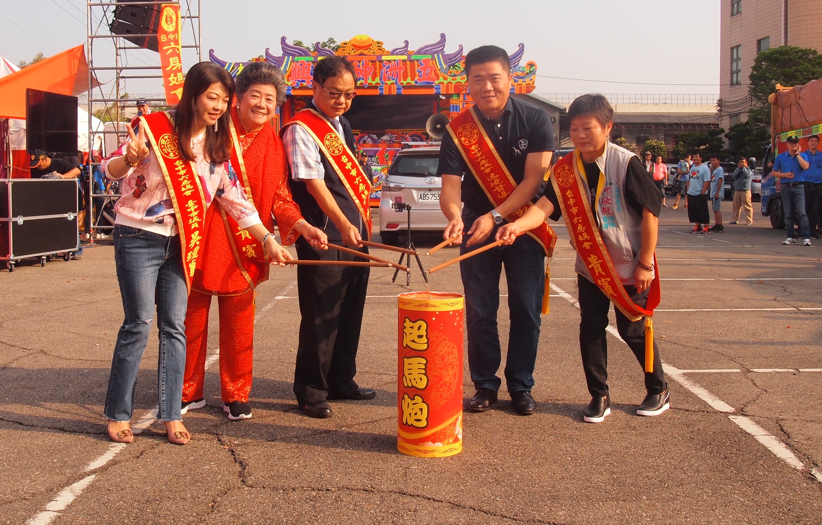 今日六房媽祖觀光文化節包括立法委員顏寬恒、市議員吳瓊華及民政局長吳世瑋等人均前往現場參香,活動也在點燃起馬炮後,在哨角隊前導下正式開始遶境行程。