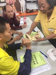 勞工局分享,學員阿義(化名)原本和妻子及3個小孩過著幸福生活,卻在101年發生車禍後雙眼全盲,一家5口全仰賴妻子撿拾資源回收勉強餬口;今年初阿義得知市府勞工局有辦理「養生紓壓技能培訓班」,於是下定決心參與職訓,等待結訓後順利返回職場就業。