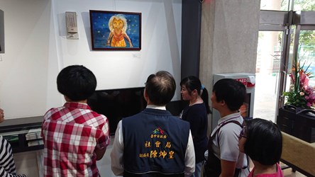 台中市政府社會局運用公益彩券盈餘分配基金與中央補助經費,推動「成年心智障礙者社區居住方案」,讓心智障礙者適應一般社區環境,至10月底已成立15處社區居住家園,服務84位心智障礙者。今(28)日住在社區居住家園的小貞,在台中市愛心家園1樓藝術光廊中開了人生第一場畫展,社會局副局長陳坤皇到現場肯定她的成長,鼓勵她繼續創作。