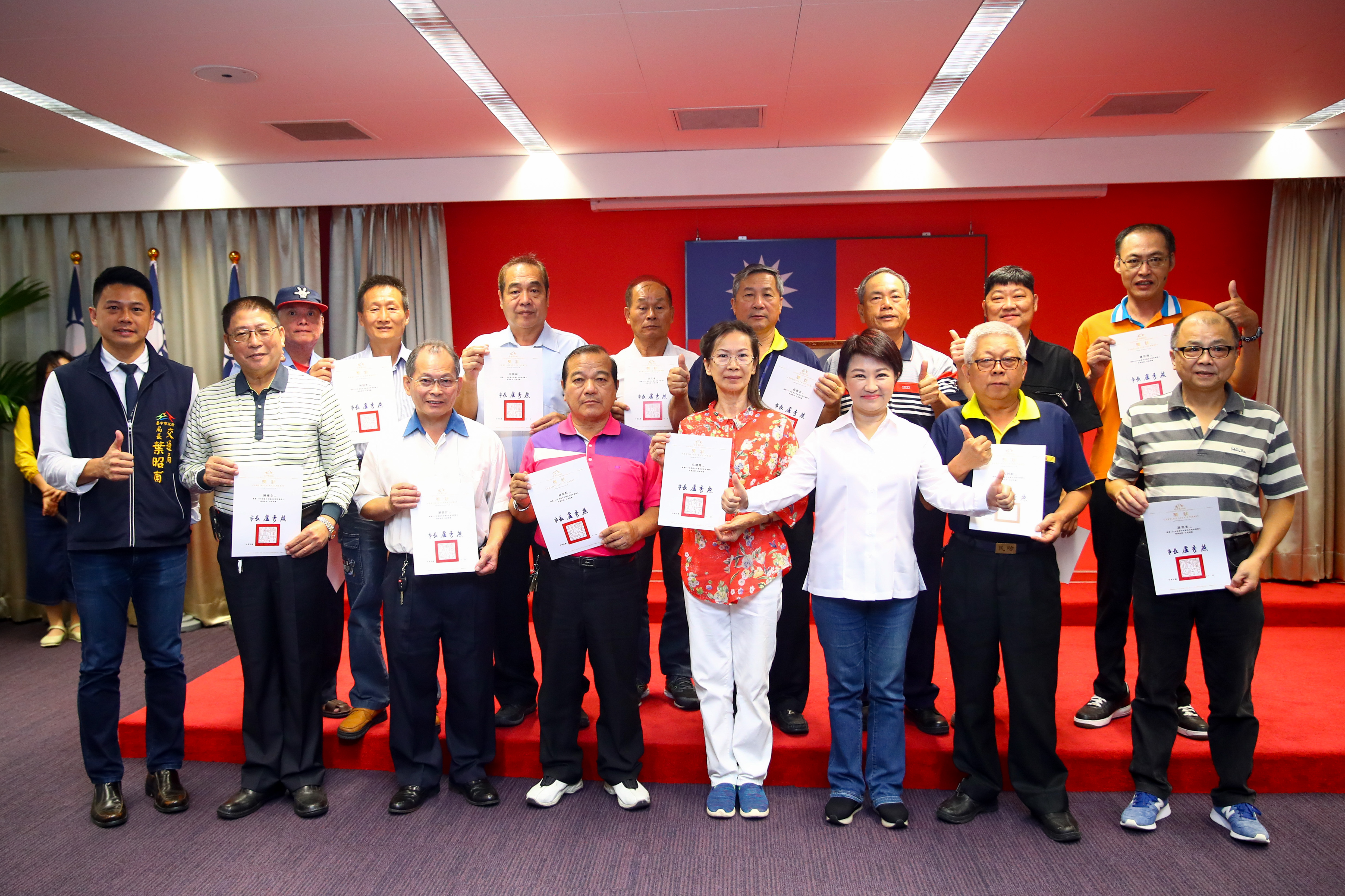 為提升台中市計程車服務品質,台中市政府交通局今年從全市7000多名計程車駕駛人中,評選出劉貴註等16位計程車優良駕駛人,市長盧秀燕今(29)日於市政會議上,頒發獎狀及6000元獎勵金予以表揚,期望他們作為同業表率,未來也持續提供優質服務,讓台中成為最宜居城市。
