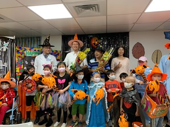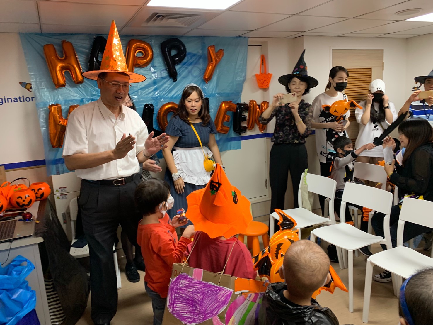 方副局長指出,病童們長期面對打針、治療的恐懼,市府配合萬聖節舉辦「不給糖就搗蛋」遊戲,讓孩子獲得滿滿的糖果和禮物,不僅讓學習變得更有趣,也盼住院的孩子輕鬆愉快的生活與學習,加速恢復健康。
