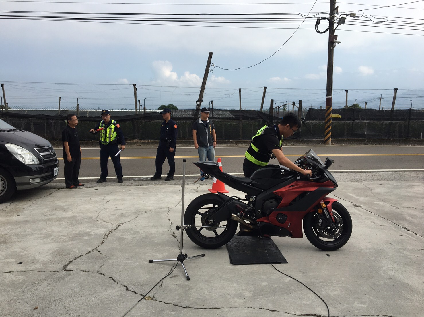 「環、警、監」聯合稽查不分平日、假日,環保局今(2)9時至11時結合警察局東勢分局與交通部公路總局,於台中市中93縣道往東勢路段,設置噪音檢測站,取締行駛產生高噪音影響山區安寧的車輛。