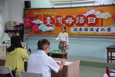 教育局表示,透過生活化競賽展演的方式進行母語傳承,並輔導各校於彈性學習時數結合在地歷史與社區文化發展特色課程,深入日常生活,打造台中市多元母語文化學習友善環境。(11/2*8)*教育局