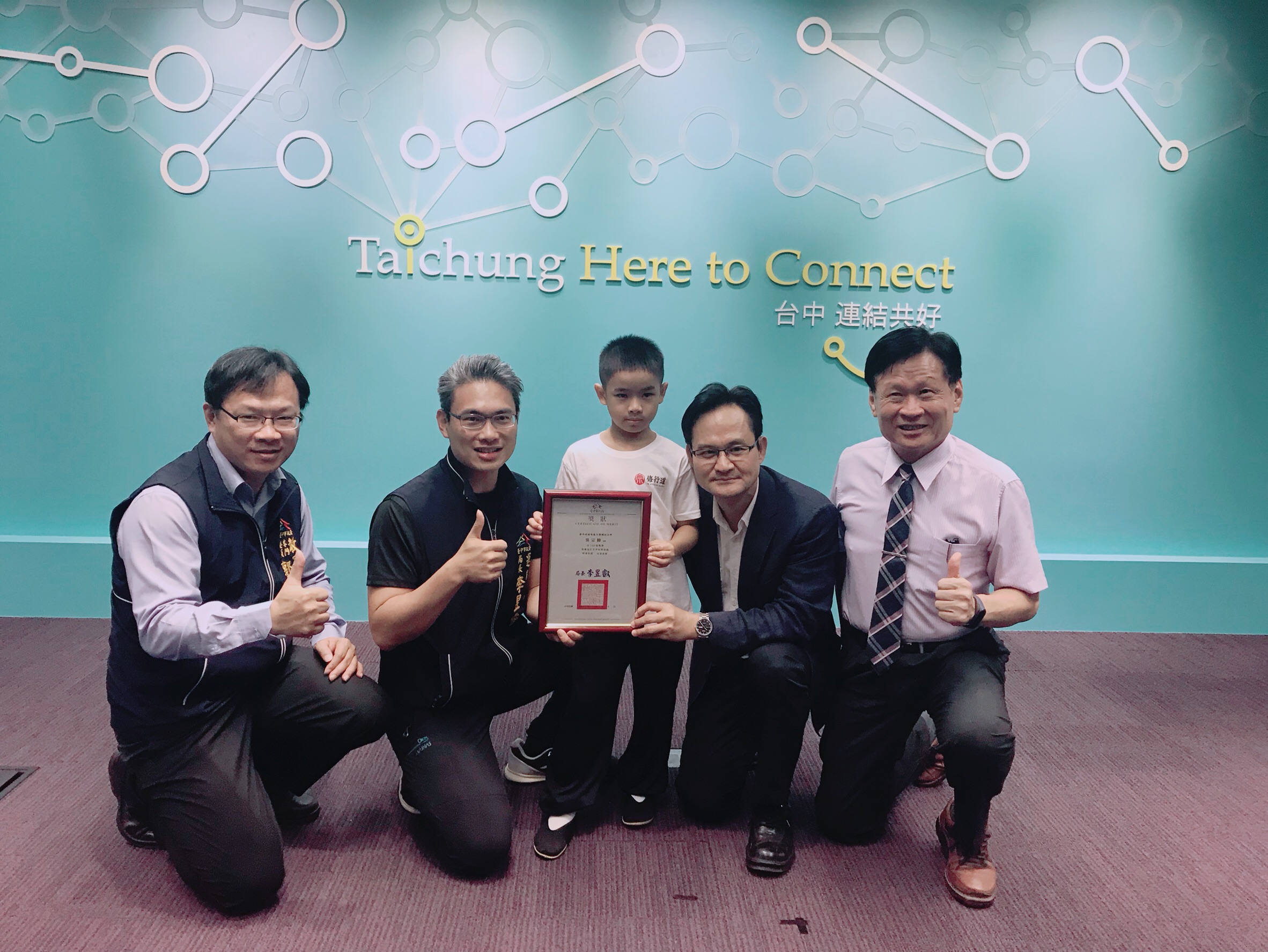 今日市府運動局在台灣大道市政大樓舉辦武術選手吳宗修榮獲金氏紀錄發布記者會,由運動局長李昱叡頒獎表揚,包括市議員張耀中、吳宗修父親吳晉杰、大墩國小校長林淵輝、教育局專門委員郭明洲等人皆到場見證。(11/4*14)*運動局