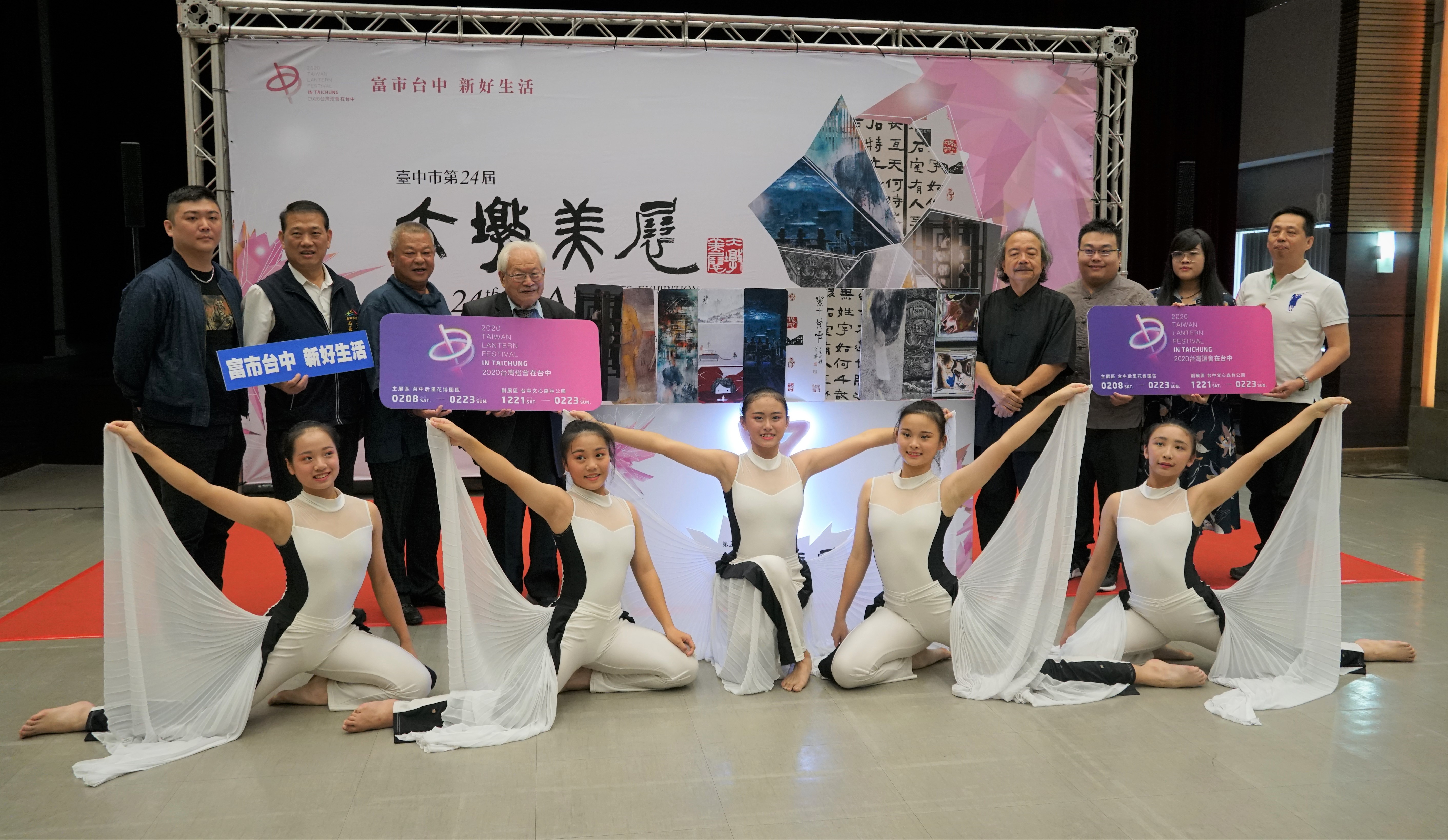 台中市政府文化局今(6)日在台灣大道市政大樓舉辦「台中市大墩美展」前導記者會,由文化局長張大春、美展籌評委員侯壽峰、黃映蒲、程代勒,及各類項目第一名得主,共同邀請民眾前往觀展。