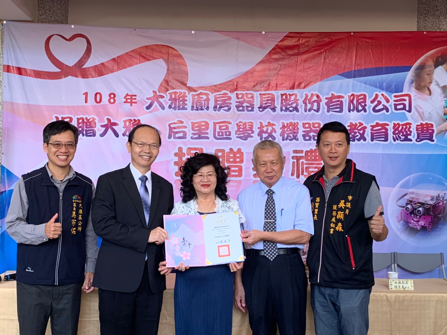 工業革命4.0(機器人時代)到來,透過智能化可以大幅提高生產效率,如何將電腦計算向下扎根也是教育重要課題。大雅廚具公司今(7)日捐贈大雅區10所國中小、后里區5所國中小每校10萬元,強化機器人教育設備,讓孩子接觸「Scratch」軟體,學習如何運用程式語言操作機器人,發展專業技能。