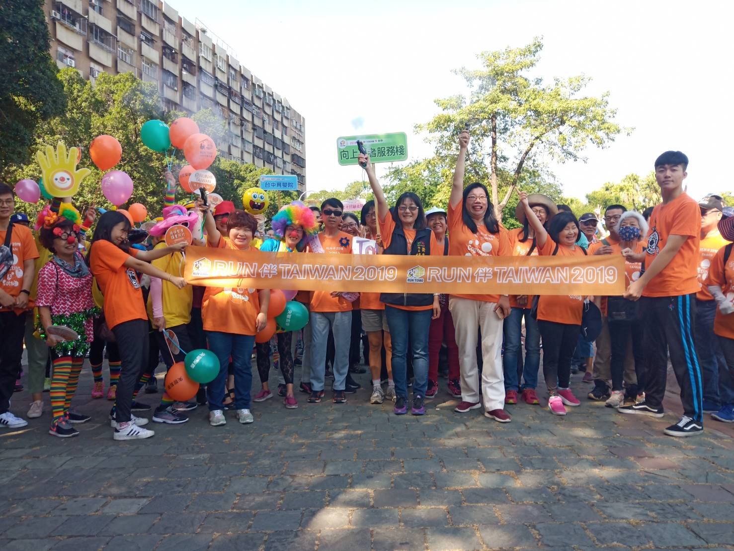 同時,為提倡健康觀念,市府衛生局與財團法人向上文教基金會也於今日舉辦「2019Run伴Taiwan-台中場」伴走嘉年華活動,吸引上百人參與,由家屬及志工陪伴失智症者,從台中公園出發,沿途行經台中思恩堂、不老夢想館、中友百貨、台灣本土文化書局4個中繼站,最後回到台中公園,交棒給彰化縣,讓愛串接至每個縣市。