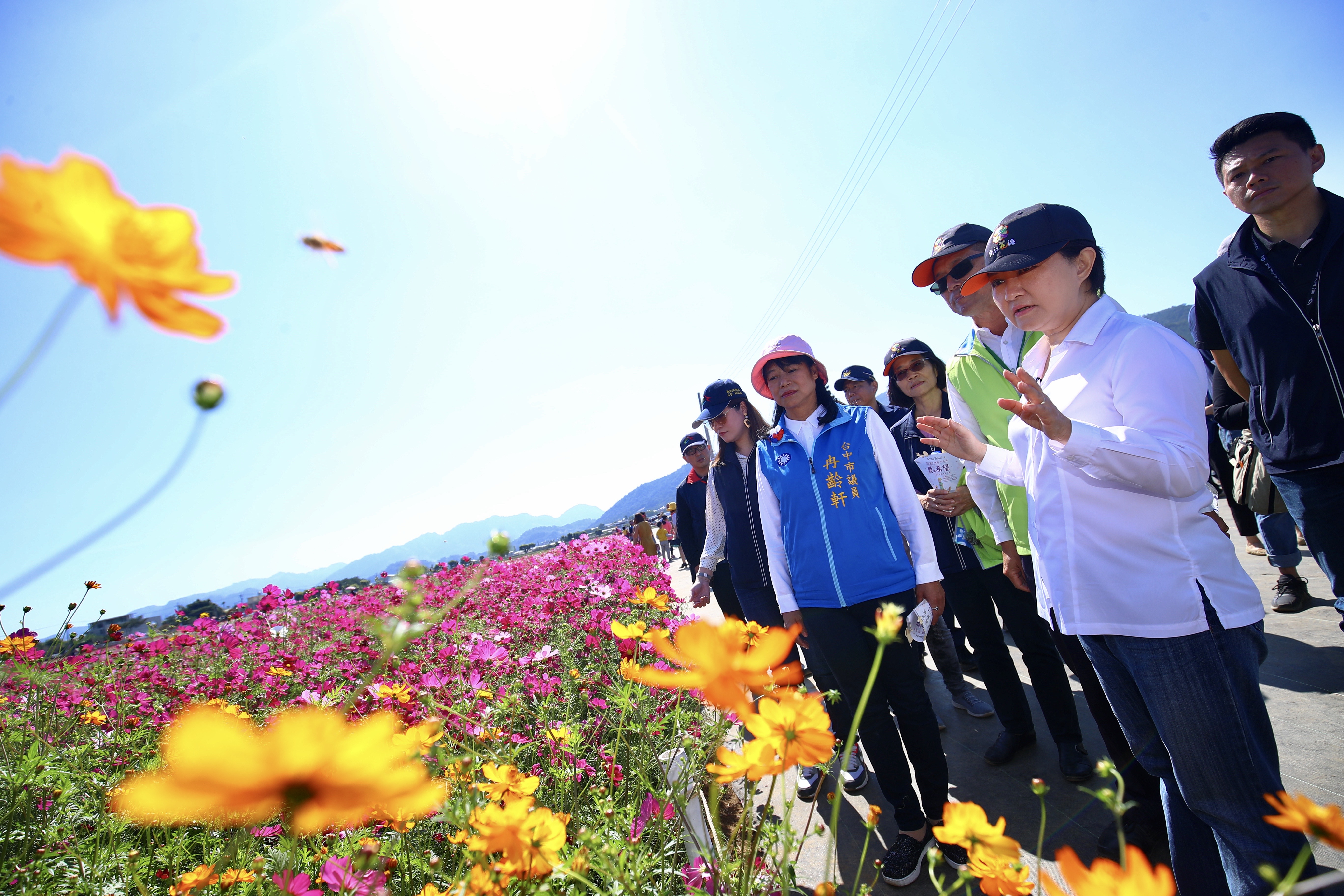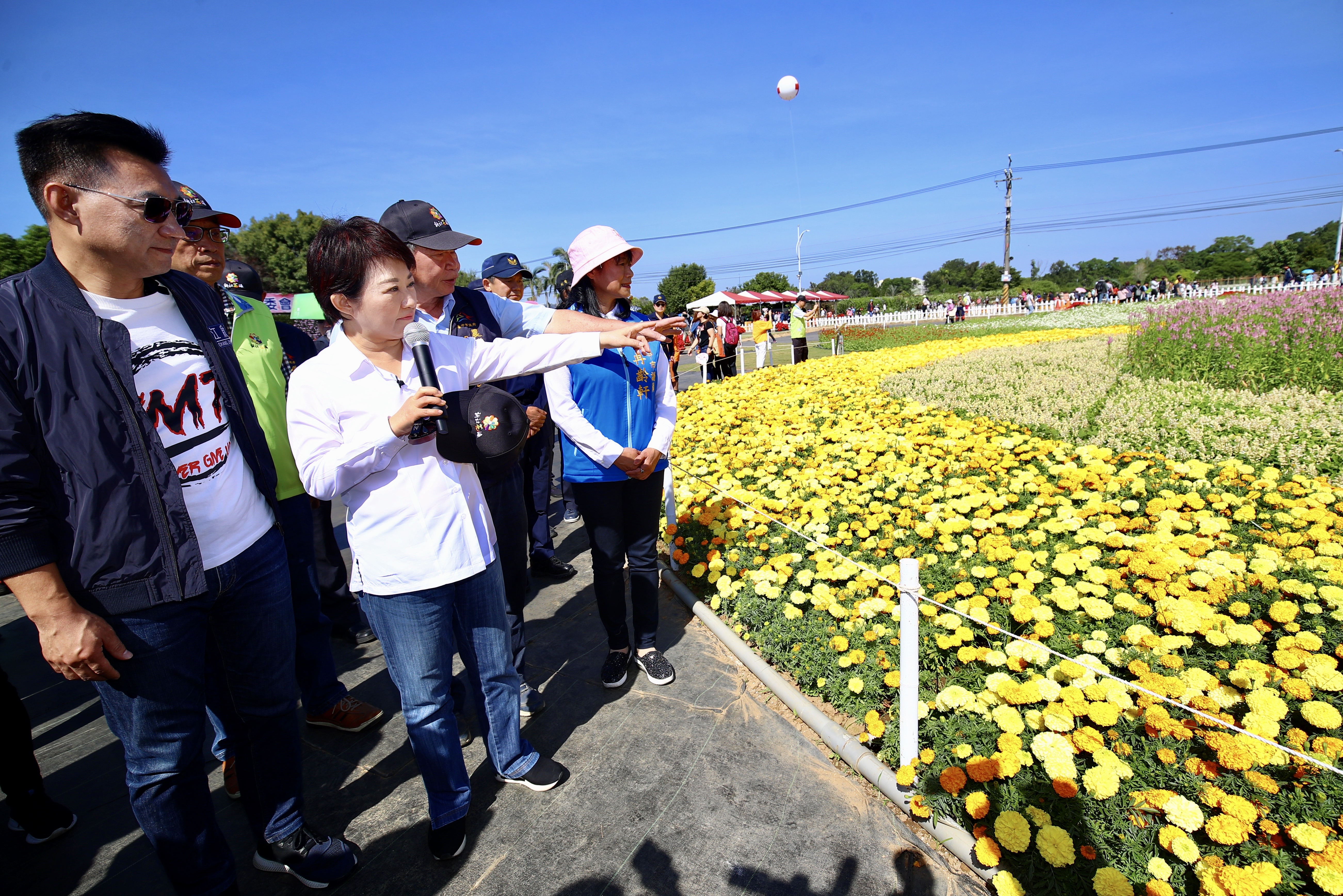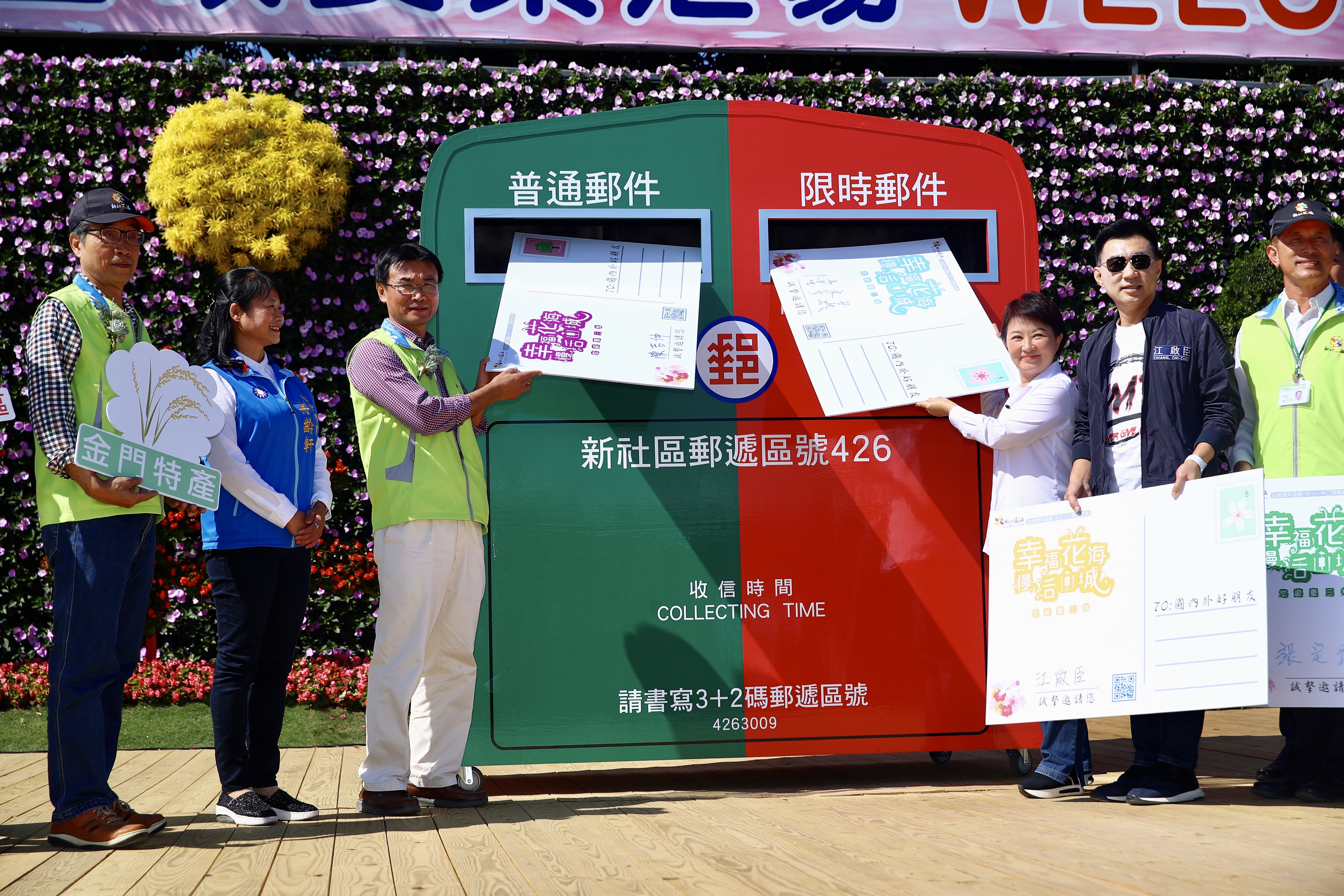今日開幕式由盧市長、立法委員江啟臣、行政院農委會主委陳吉仲、種苗改良繁殖場長張定霖一同將印有新社花海的巨幅明信片投遞郵筒,宣布活動開跑,市議員冉齡軒、蔡成圭、賴佳微、農業局長蔡精強、觀旅局長林筱淇、交通局長葉昭甫、建設局長陳大田等人也共襄盛舉。(11/9*7)*農業局