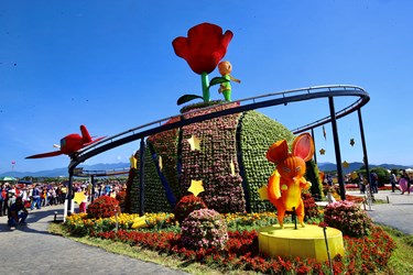 市府觀旅局表示,今年花毯節展區占地1.8公頃,主裝置「玫瑰星球」從上午9時至下午4時每個整點動態呈現小王子與玫瑰相逢場景,周邊還有「權力國王」、「慾望商人」、「虛榮男爵」等花卉裝置,以及長達200米的玫瑰圖騰、由千朵新鮮玫瑰佈置的花艷廊道,已成為打卡熱點。