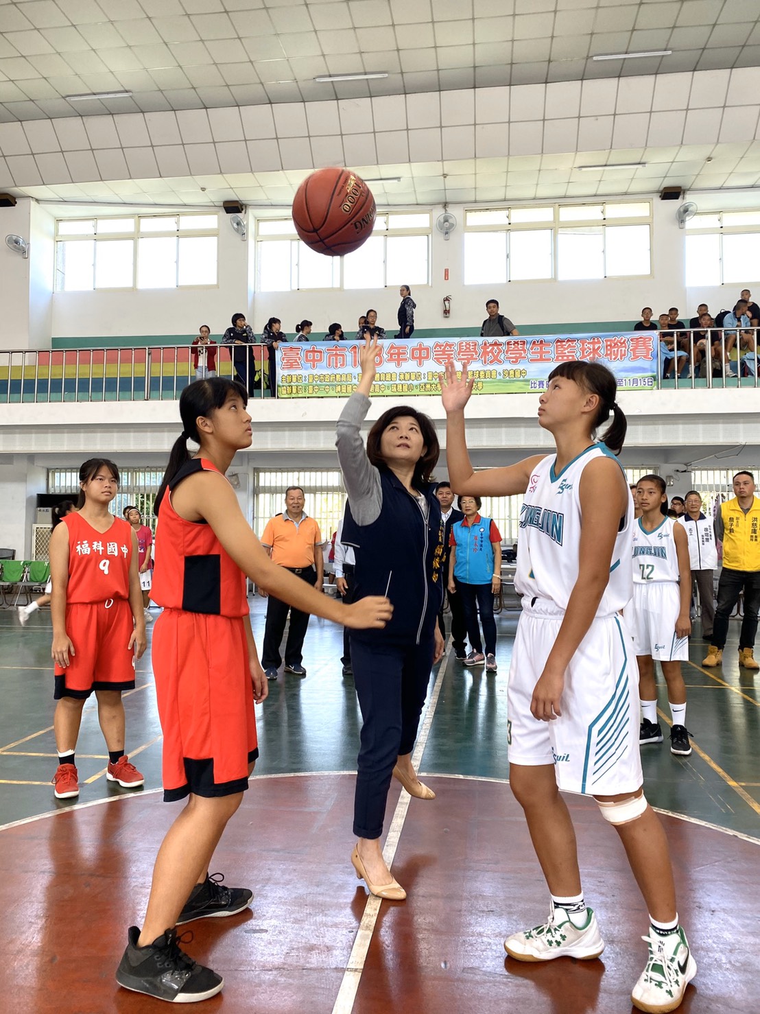 108年台中市中等學校學生籃球聯賽今(11)日起一連5天分別在神岡國中、忠明高中、台中一中、亞洲大學及瑞穗國小等地燃戰火,共69所國高中學校、91支隊伍、約1,400位選手報名參賽。教育局專委賴緣如今日出席開幕典禮,並勉勵參賽選手盡情享受比賽,發揮團隊精神。