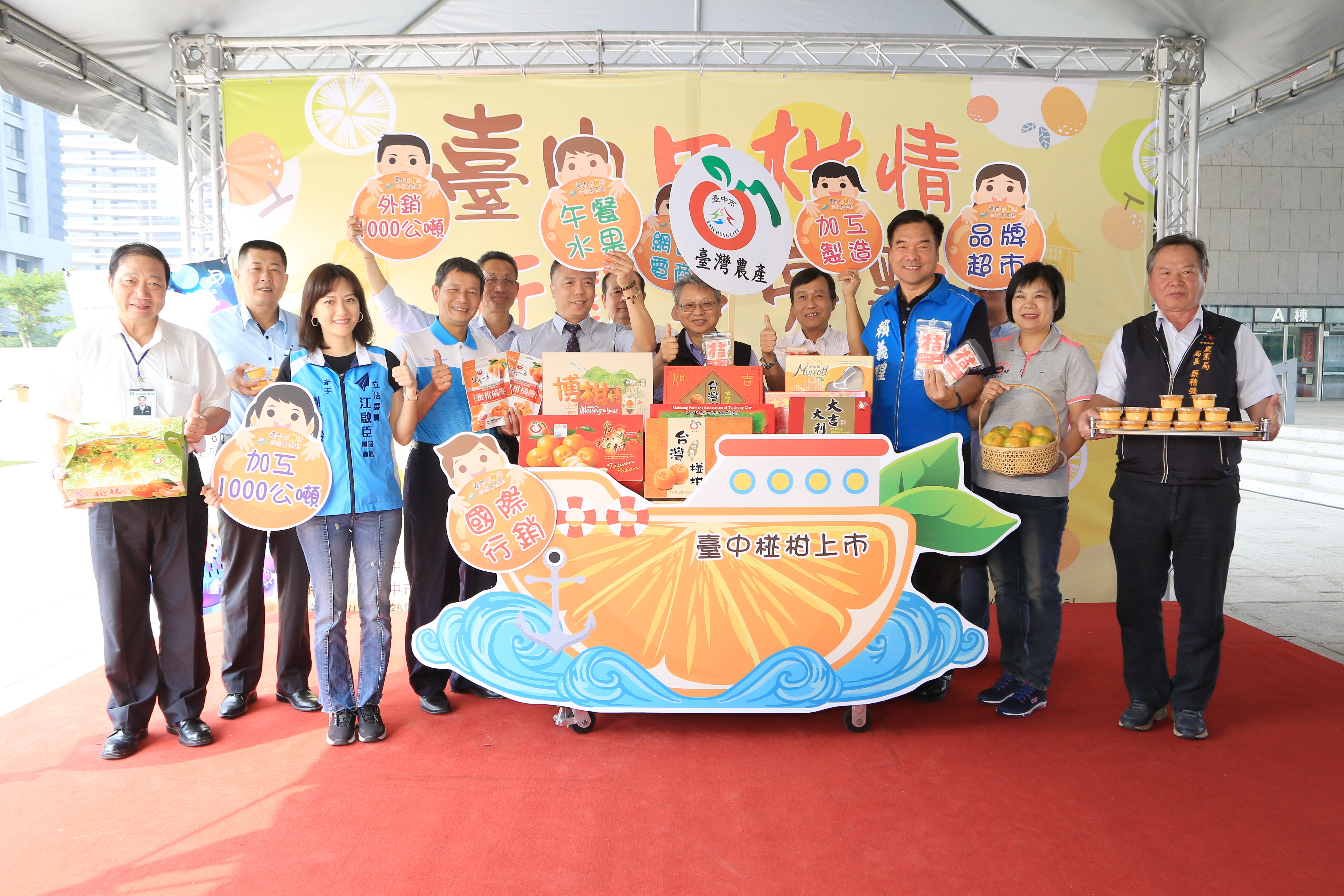 農業局長蔡精強也出席記者會力推台中椪柑,他表示,椪柑是台灣獨有的柑橘品種,台中更是全台椪柑產量最大、種植面積最大的地區,市府積極輔導農會行銷椪柑,並將較不美觀的椪柑次級品製成百分百無添加果汁,或製成果乾、軟糖等加工品,創造附加價值,提高農民收益。