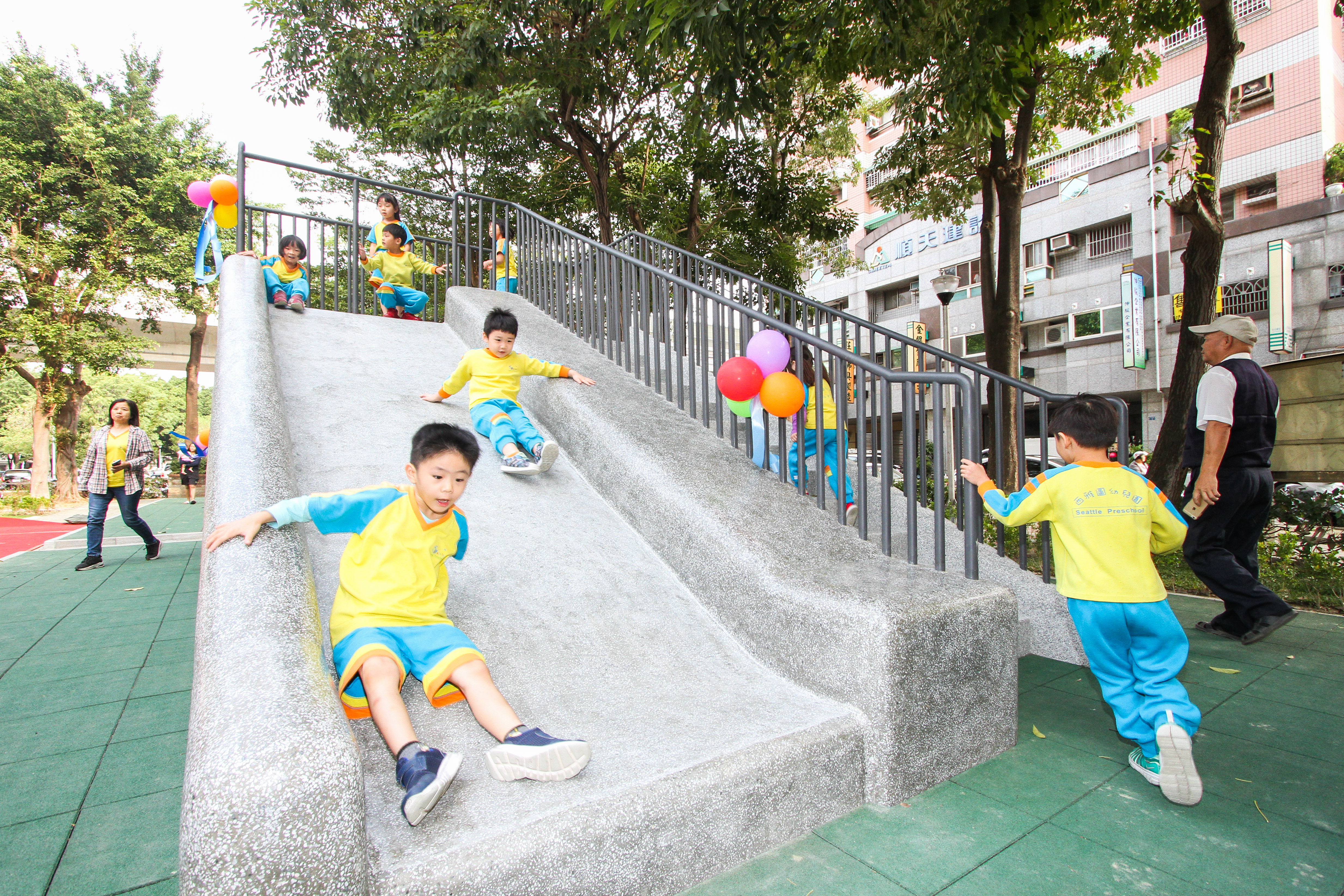 其中,計畫具有3大特點,首先就是要讓步道平順、便於行走,成為輪椅及嬰兒車都可進入無障礙通道,其次則改造兒童遊戲設施,以親子及身障者共融使用為目標,讓孩子們都能安全、放心地遊戲,同時還更新公園廁所,打造舒爽潔淨的如廁環境。