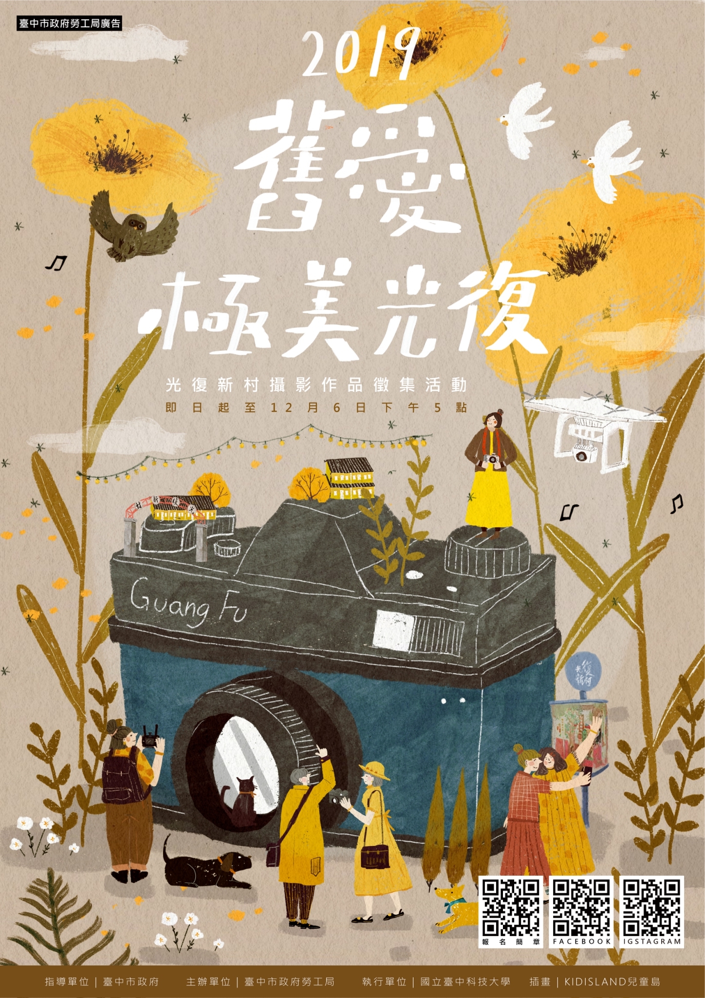 勞工局長吳威志指出,光復新村曾為省政府教育廳、衛生處、印刷廠員工的眷屬宿舍,後經市府大力整頓,並由勞工局推動「摘星青年、築夢臺中」創業計畫,目前約60位青年進駐,是全國最大且提供實體店面學習的青創基地。藉由攝影競賽,佳作可作為月曆、書卡、裱框展品,讓政策加強宣傳。