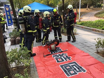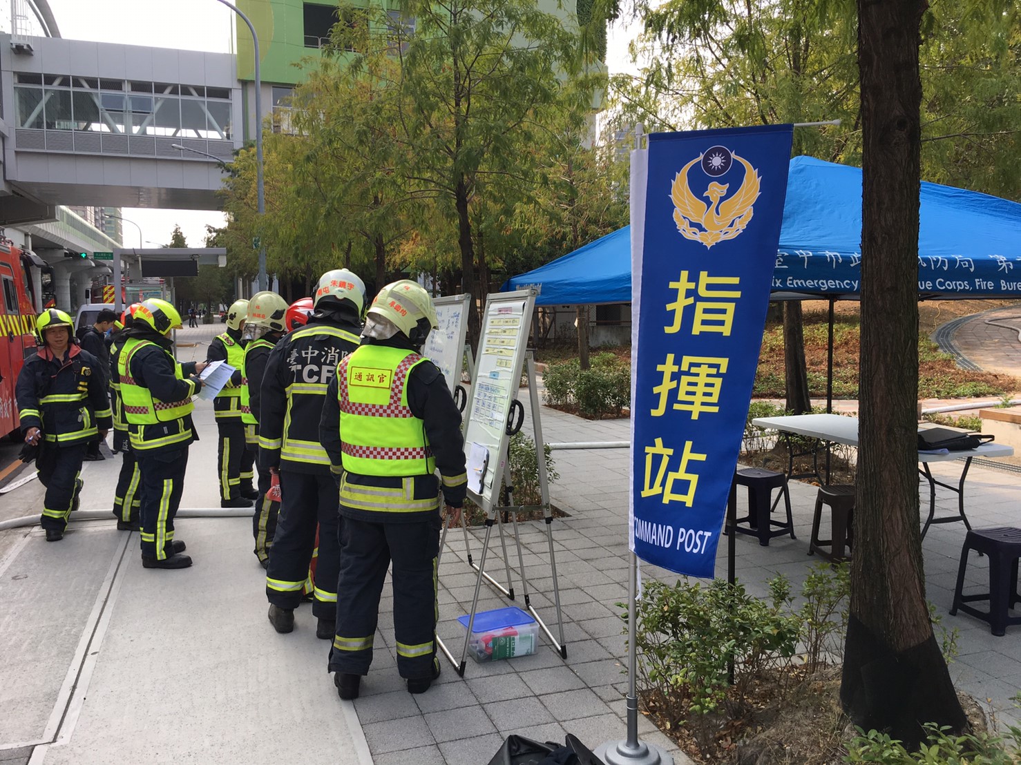 迎接台灣燈會大批遊客,台中市政府消防局為確保燈會期間消防安全,第六救災救護大隊今(14)日在燈會副展區文心森林公園舉辦消防搶救實兵演練,情境假設會場燈區起火,場所人員立即啟用自衛消防編組進行初期疏散,救災人員則依照任務編組進行搶救、搜索,強化面對突發意外的應變處理能力,守護遊客安全。