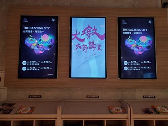 文化局指出,大墩文化中心年參訪人次逾百萬人,是台中市重要的藝文場館之一,中心以燈會旗海迎賓、電子布告欄宣傳、廁間設置燈會資訊等巧思打造「璀璨台中」,融入與社區、環境共存的燈光設計,成為台灣燈會的最佳宣傳大使。(11/15*14)*文化局