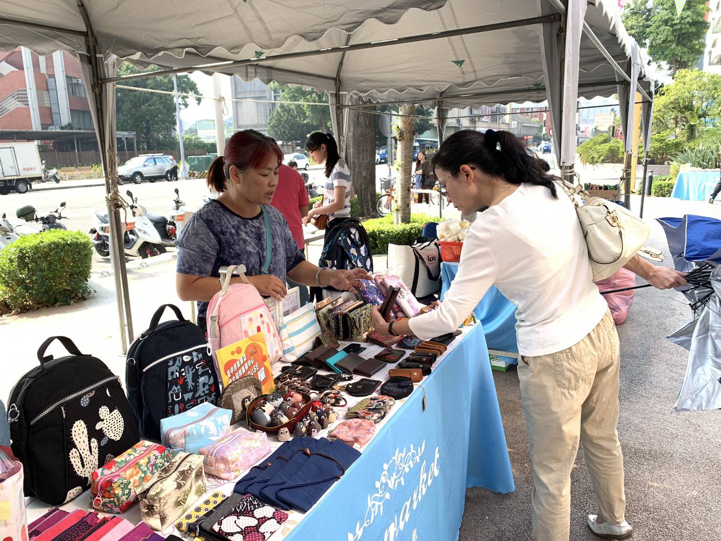 此外,社會局所屬的犁頭店婦女福利服務中心,為提升婦女工作技能及增加收入,自105年起,招募二度就業婦女們參加手作技能的培訓,創立「Hope House希望屋」品牌。今、明兩日在火車站前秀泰廣場設攤推廣、展售手作包包,社會局邀請民眾到現場尋寶,分享媽媽們創業的成果,給予支持及肯定。