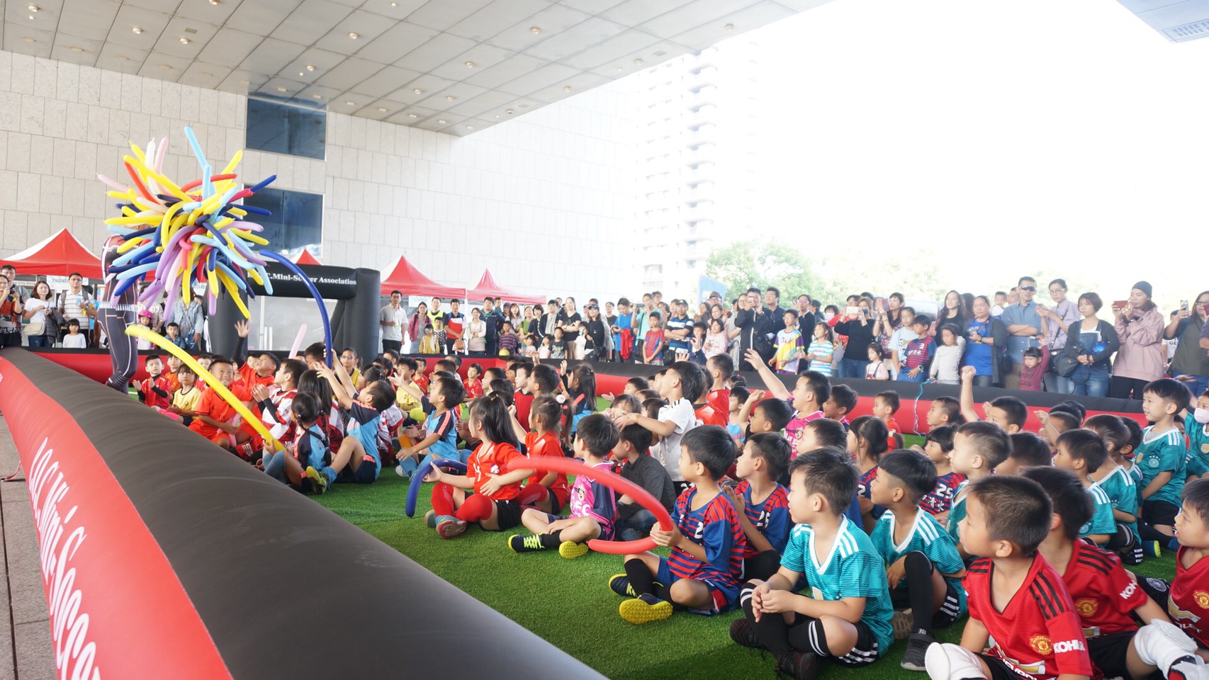 而今日市府也在台灣大道市政大樓府前廣場與中華民國迷你足球協會共同舉辦第1屆「2019城市幼兒園盃迷你足球賽台中站」,賽事以6歲以下幼兒為參加對象,共吸引近16支隊伍、約160名小小球員報名參賽,讓未曾接觸過足球的小朋友們,藉由氣墊球場體驗足球樂趣;另也特別舉辦親子組項目,搭配2位大人組隊,讓親子間留下美好難忘的回憶。