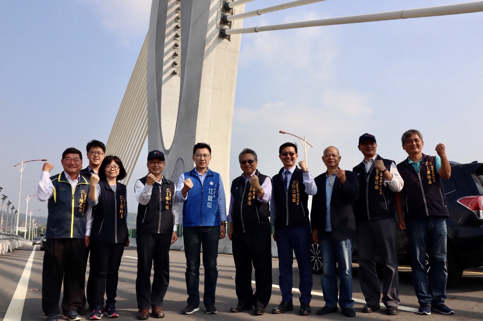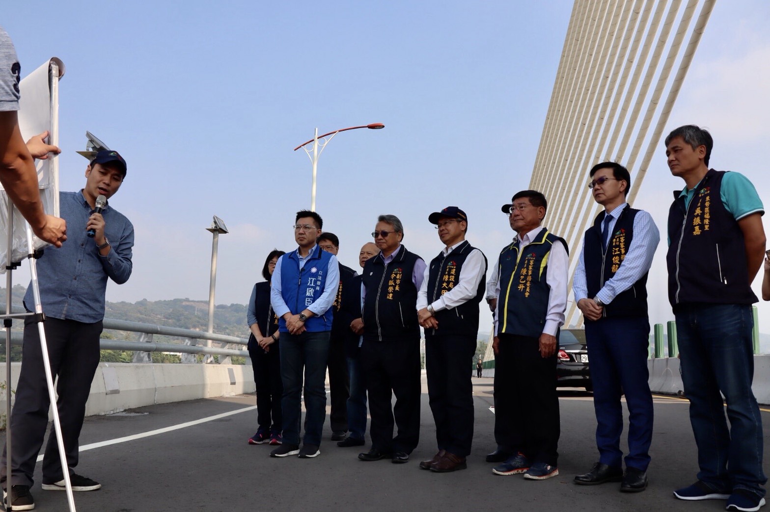 副市長令狐榮達日前偕同立法委員江啟臣、建設局長陳大田、客委會主委江俊龍等人,前往東豐快速道路第4標工程橋梁端視察,了解目前辦理情形與未來規劃。