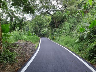 建設局說明,慶福街(中46)因農產運輸機具及大型觀光遊覽車輛使用頻繁,造成路面龜裂不平、路基不良,路旁上下邊坡及排水系統久未整修,下邊坡擋土牆又損壞,透過加強排水消除道路積水、改善邊坡防護提升行車安全,並提高標線抗滑係數降低機車打滑,以及增進AC路面維護品質增加道路使用年限,相關施作於108年5月10日開工、10月28日完工。