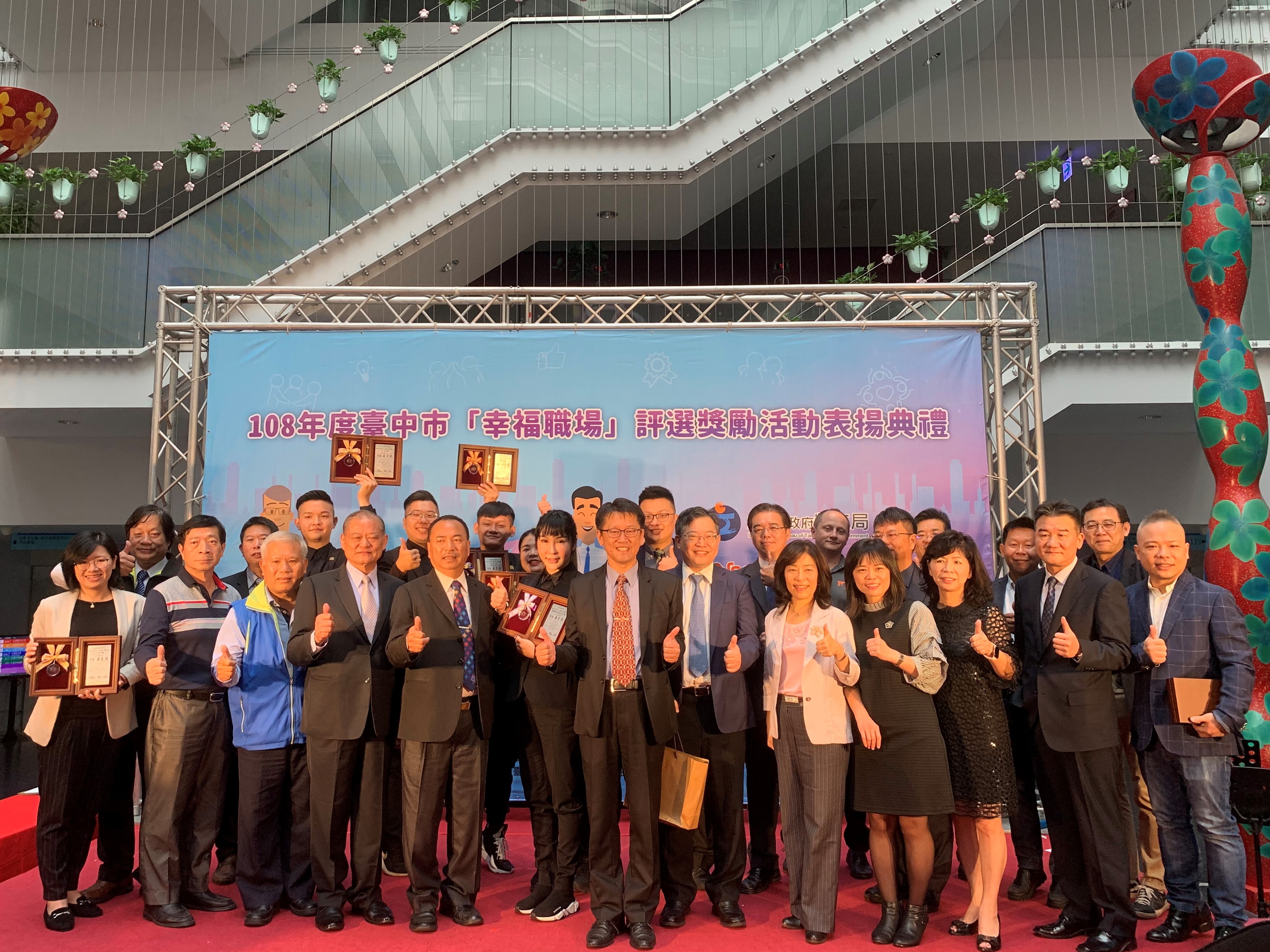 台中市政府勞工局舉辦幸福職場評選活動,今年度共有70家企業參加評選,由「屋馬國安有限公司」、「童綜合醫療社團法人童綜合醫院」等16家企業脫穎而出,並由「屋馬餐飲集團」拿下推動幸福五星獎,員工福利措施包括免費電影票、心情假、返家車資補助等。勞工局長吳威志今(20)日表揚得獎企業,鼓勵更多企業營造友善工作環境。