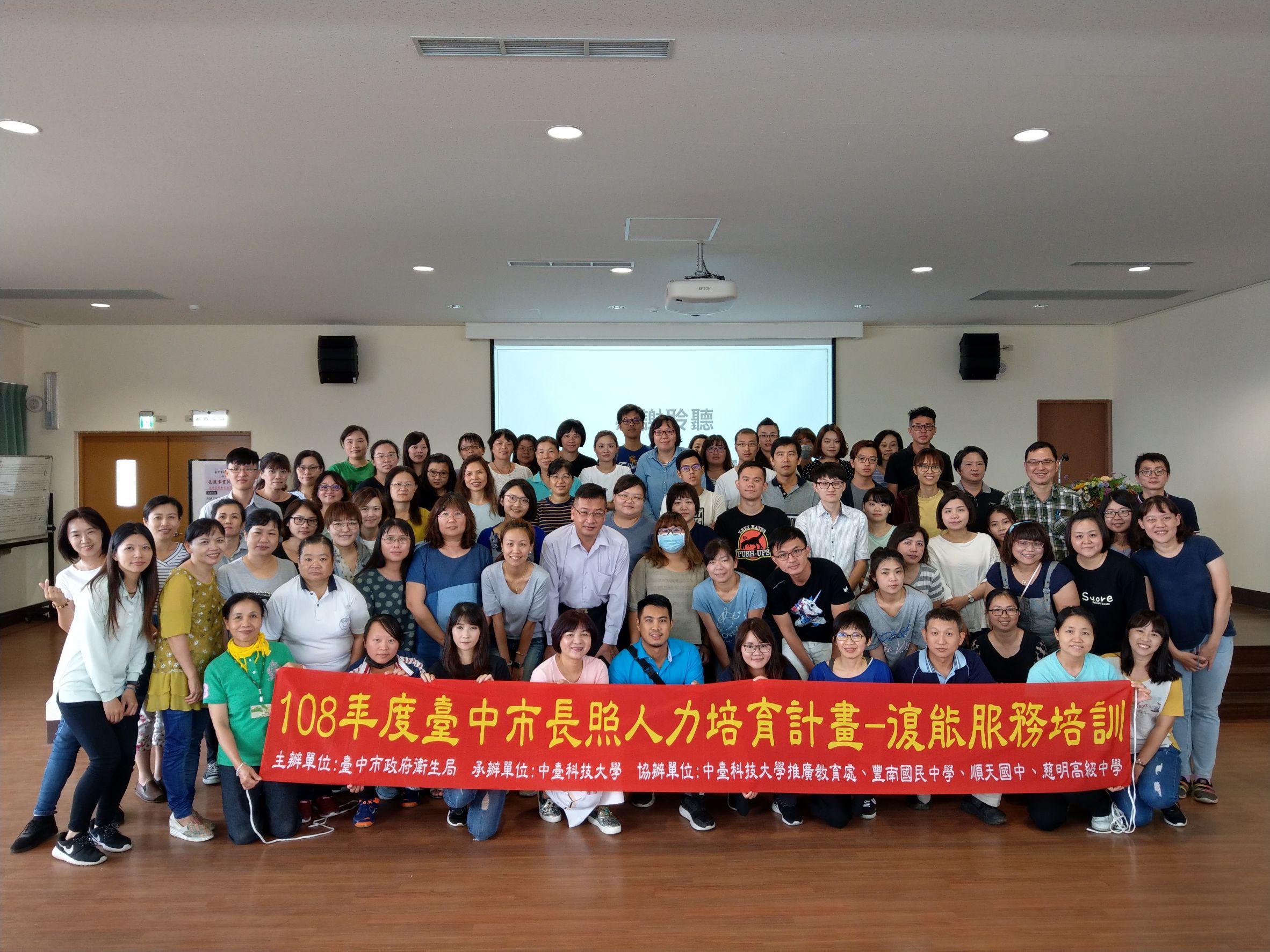 台中市政府衛生局今年委託中台科技大學開辦5場「長照專業復能服務訓練」,邀請長照人員參與,訓練內容包含復能概念、跨專業團隊角色功能、生活輔具與復能訓練及個案討論,目前已辦理4場、報名參訓人數約400人,盼協助長照人員加強專業能力。