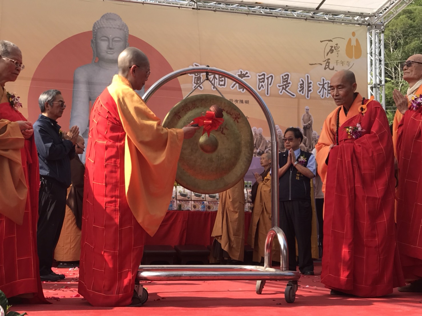 北屯區金剛山般若學院道場年久失修,空間不敷使用,104年起以「一磚一瓦共造千年寺、萬人萬善同證萬尊佛」為理念,多方募款重建,今(23)日開工動土,台中市政府民政局長吳世瑋出席觀禮,感謝金剛山般若學院推廣宗教文化,有助社會安定,祝福工程順利圓滿。