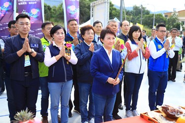 盧市長今日在副市長楊瓊瓔、經發局長張峯源、潭子區長林國聲陪同下,前往潭子聚興產業園區動土典禮祈福祭拜,祝工程圓滿順利。包括立法委員江啟臣、沈智慧、洪慈庸,市議員黃健豪、徐瑄灃、賴朝國、蕭隆澤、台糖公司中彰區處經理曾吉松和皆豪公司董事長曾國展等皆到場見證。(11/25*18)*經濟發展局