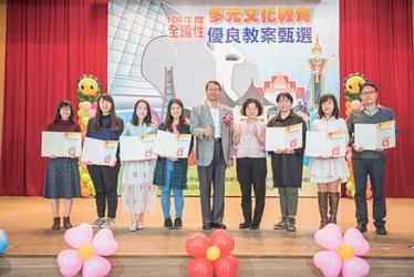 台中市政府教育局今(30)日於台中市立啟明學校舉行「108年度全國性多元文化教育優良教案甄選」頒獎典禮,這次活動投稿件數高達122件,稿件設計也十分突出,經評審委員評核,雲林縣私立正心高級中學、嘉義縣立民和國民中學及金門縣金湖鎮金湖國小榮獲特優,由教育局副局長方炳坤頒發獎項。