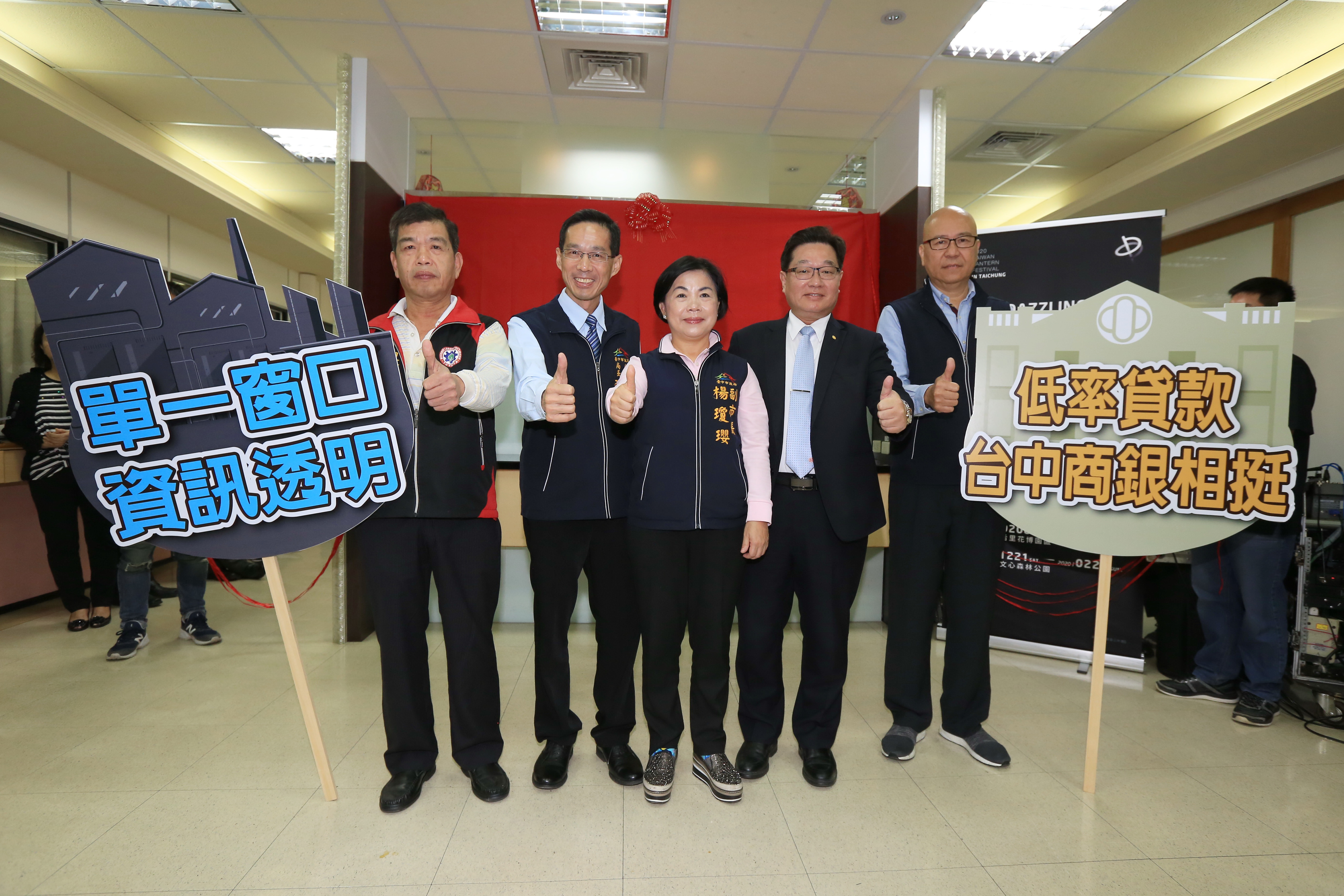 今日「特定工廠登記單一窗口」揭牌儀式,包括副市長楊瓊瓔、經發局長張峯源、台中商業銀行總經理賈德威、市議員徐瑄灃、台中市工商發展投資策進會總幹事高禩翔、台中市臨時工廠登記暨未登記工廠促進會理事長葉振福、台中市潭雅神工業廠商協進會秘書長陳政鴻、台中市烏日區溪南工商協進會理事長吳永松、台中市大里區草湖工商發展協會理事長林智偉等人皆到場共襄盛舉。此外,市議員羅廷瑋、陳文政、吳瓊華、曾朝榮、周永鴻、楊正中也派代表到場關心。(12/2*14)*經發局