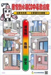要使用正確的「型式」,如果熱水器型式不符合居家通風環境或是裝設地點不適宜,應盡速改善;要注意安全的「安裝」,選擇領有合格燃氣熱水器承裝業證書廠商及技術人員安裝;要注意平時的「檢修」,熱水器應定期檢修或汰換,才能免於一氧化碳中毒的無形風險。(12/3*18)*消防局