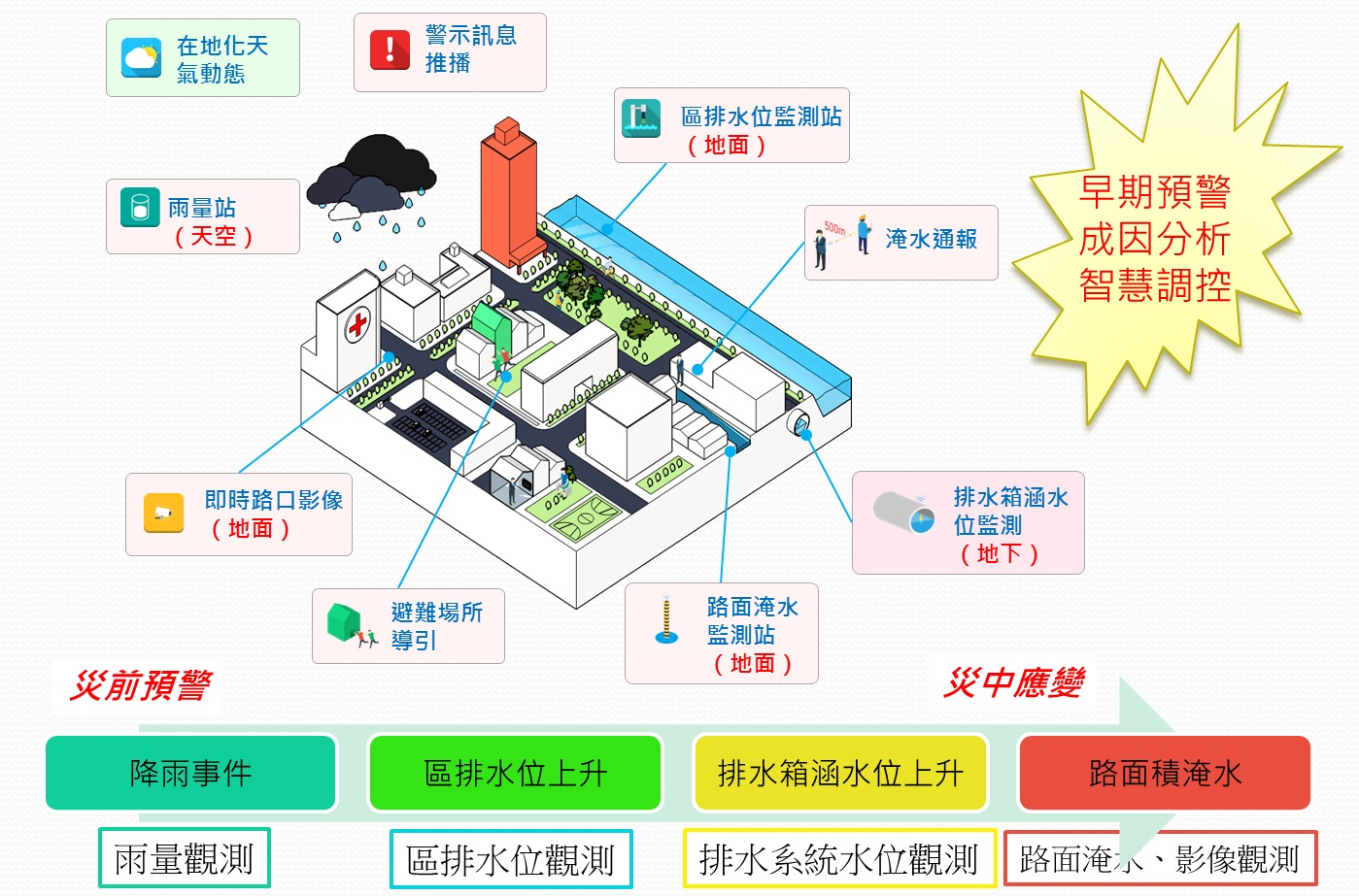 建構臺中市多元立體智慧防汛網示意圖