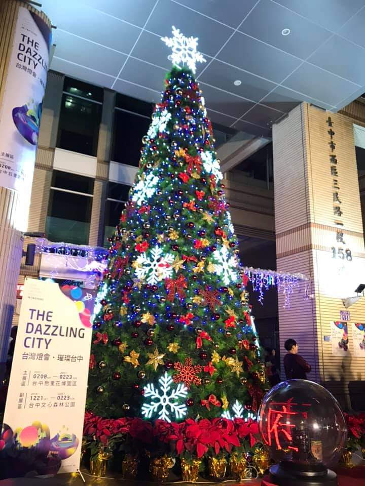 台中市政府地政局及中山地政事務所為迎接即將到來的耶誕節和台灣燈會,在中山地政大樓打造直徑3公尺、高7公尺的發光耶誕樹,並在周圍近百公尺街廓鋪設彩色燈海,即日起至明年223日都可以看見絢爛光環境。