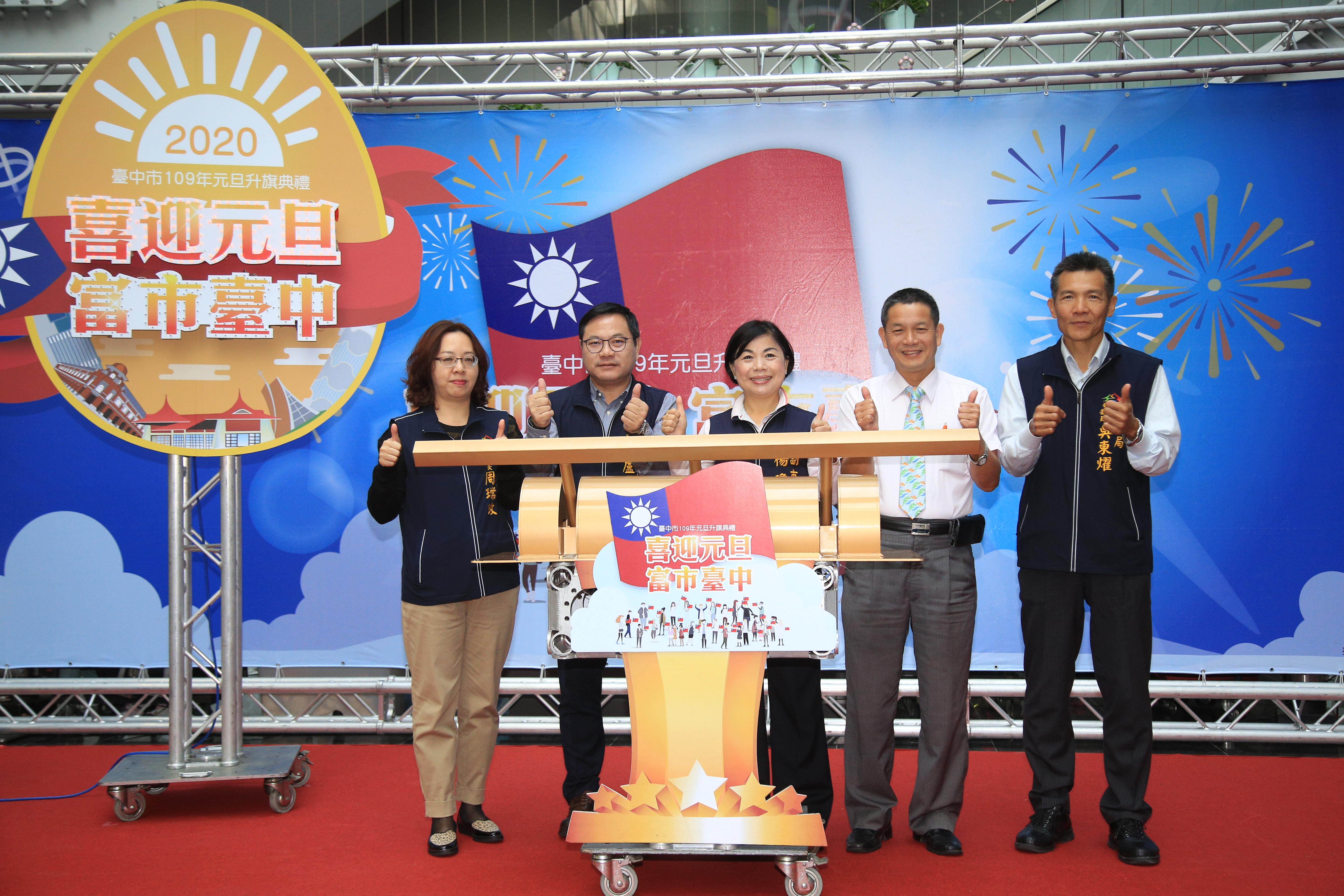 2020年即將到來,台中市政府將於明年1月1日在台灣大道市政大樓府前廣場舉辦元旦升旗典禮,進場國旗將加大為以往尺寸的4倍,現場也會發放小國旗、多功能萬用燈,更徵選109位1月1日出生的市民擔任國歌領唱嘉賓。副市長楊瓊瓔表示,歡迎元旦寶寶踴躍報名領唱,額滿為止,一起迎接新年到來。