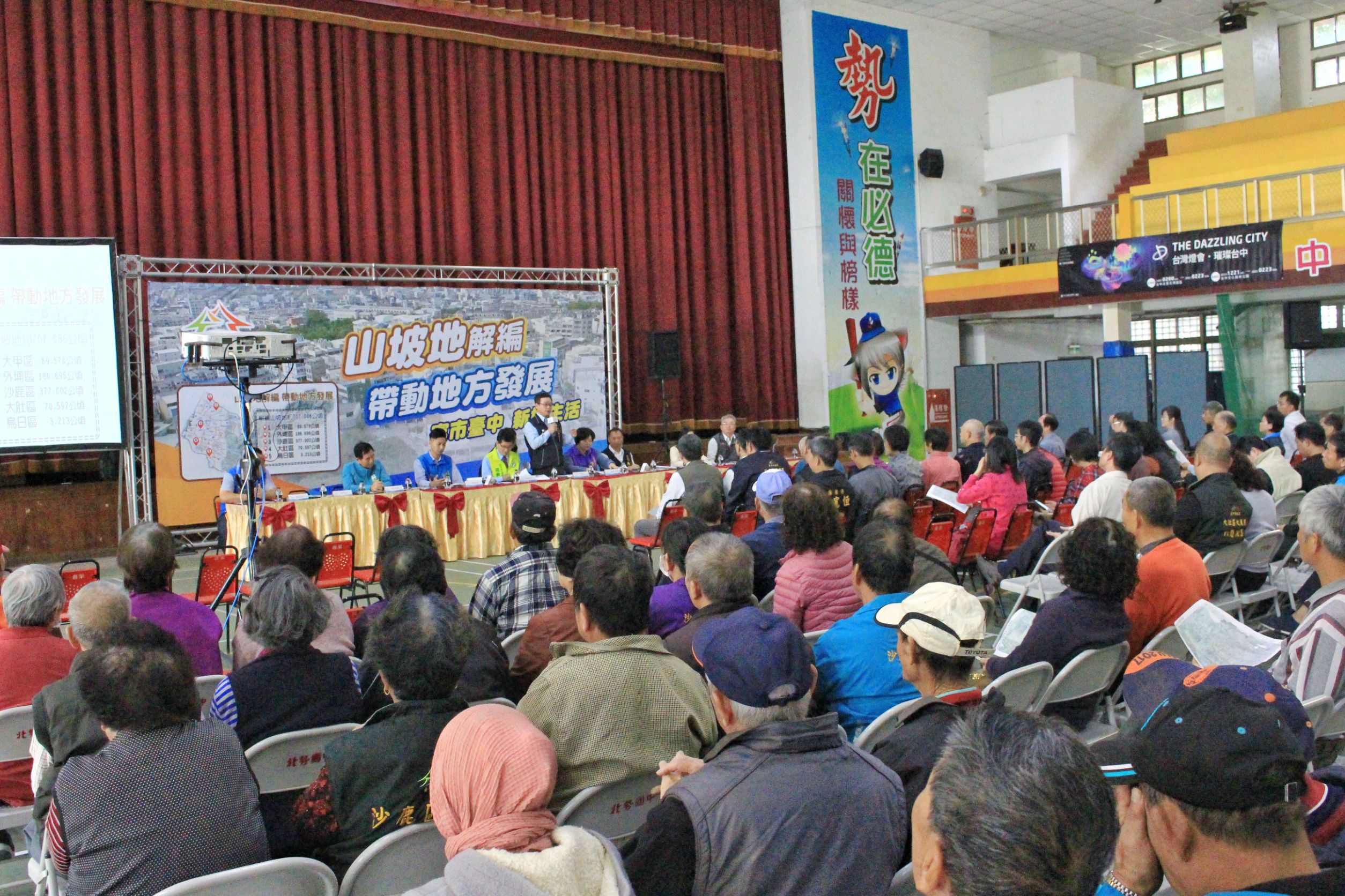 台中市面積超過22萬公頃,其中山坡地面積就接近16萬公頃,占全市面積72%,經市府重新檢討山坡地範圍後,今年11月1日起公告解編共707.086公頃的山坡地,範圍包括大甲、外埔、沙鹿、大肚及烏日等5個行政區,市長盧秀燕對於可以重新賦予這些市民資產公平開發的機會十分樂見,更希望能藉此帶動地方全面發展,今(19)日市府特別在解編面積最多的沙鹿區舉辦說明會,讓市民了解山坡地解編成果及後續自身權益。