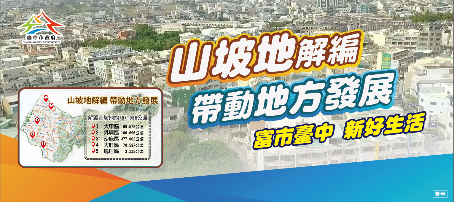 水利局表示,今年10月24日獲行政院核定這次山坡地解編範圍,市府也已完成公告,這些解編土地未來開發將不再受水土保持法規範,回歸一般土地管制,也免繳山坡地開發利用回饋金,將提升區域土地價值與經濟產業發展,讓「富市台中、新好生活」再向前一大步。