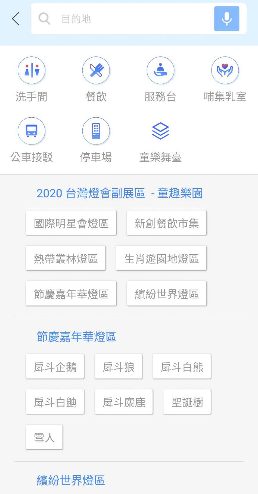 資訊中心主任黃惠敏表示,台灣燈會智慧導航APP結合官網的設計,一進APP首頁就能看到民眾最常查詢的交通接駁及展演資訊,在導航方面,經過多次現場實測及調校,把接駁站點、哺集乳室、亮點燈座、洗手間位置、服務中心等都放進系統裡,讓民眾使用手機就輕鬆查詢及簡單導航,民眾可以先瀏覽燈區及燈座的介紹,看到想去的燈座後點選「開始導航」,或是從APP首頁的「燈區導航」進入燈區的地圖後按圖索驥,只要跟著畫面和語音走就能去想去的地點,暢遊燈區不用擔心會迷路。