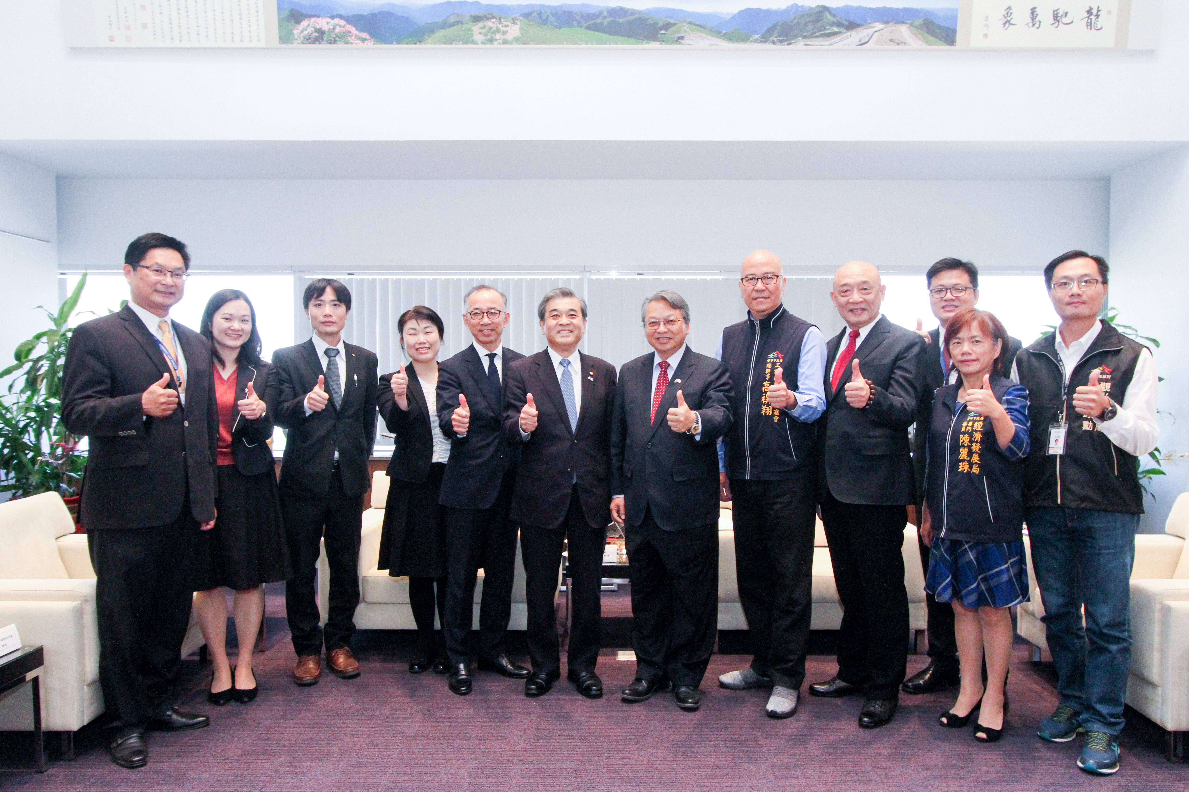 今日愛媛縣副知事神野一仁及其係長、課長一行人拜會市府,除令狐副市長外,台中工策會高總幹事高禩翔、國際事務科委員謝明達、經發局代表、觀旅局代表、國際事務科與秘書處人員等人也到場接待,會談氣氛熱烈融洽。