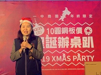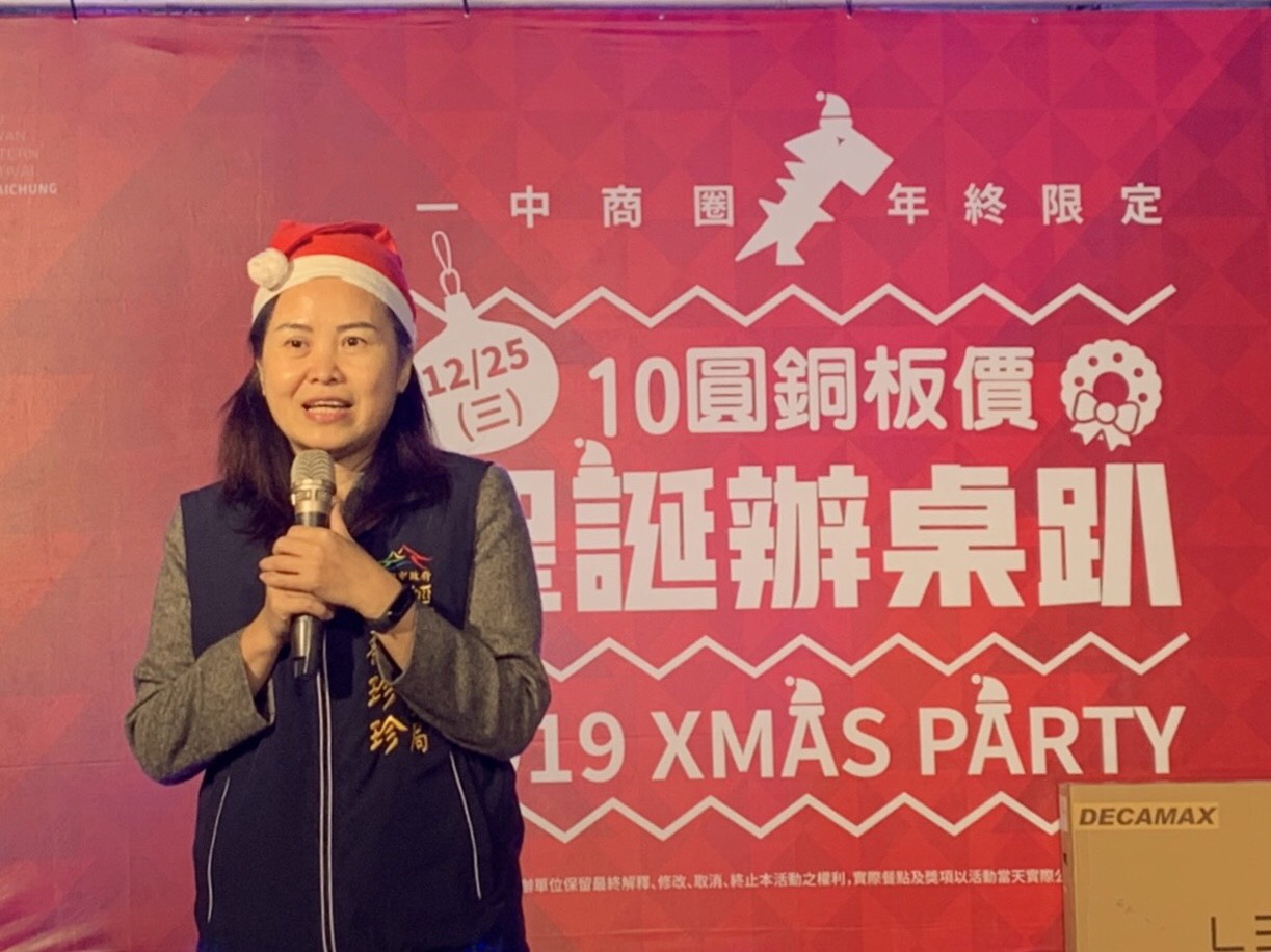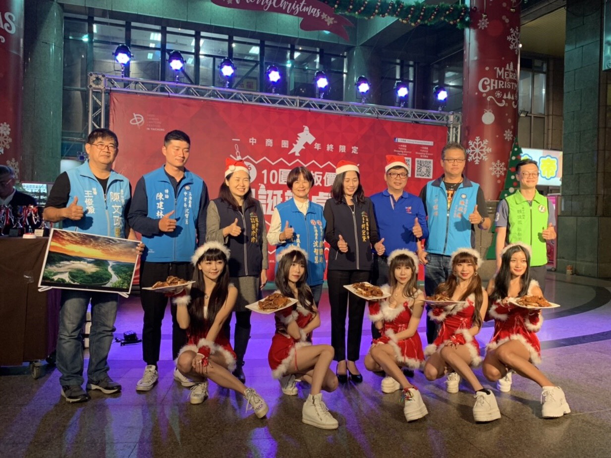台中市政府經發局與經濟部中小企業處輔導,一中街商圈管理委員會今(25)晚於水利大樓前廣場舉辦「2019一中商圈10元銅板價,聖誕辦桌趴」,特別的是這場辦桌宴只要入席費「10元!」日前開放報名,短短2天即銷售一空,總共匯集一中商圈12家名店包括一中豪大雞排、一中豐仁冰、日船章魚小丸子、韓鶴亭烤肉等14道豐盛佳餚,滿足每位饕客的味蕾。