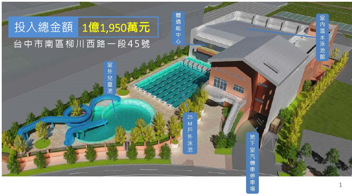 運動局說明,二信游泳池因921地震造成池體漏水,周邊磁磚破裂、下陷,為保護民眾使用安全,於102年暫停對外開放,之後在市府團隊與普將運動公司的努力下,今年1115日取得建照,期望完工後透過民間團隊規劃經營,提升各項設施效益、推廣游泳運動。