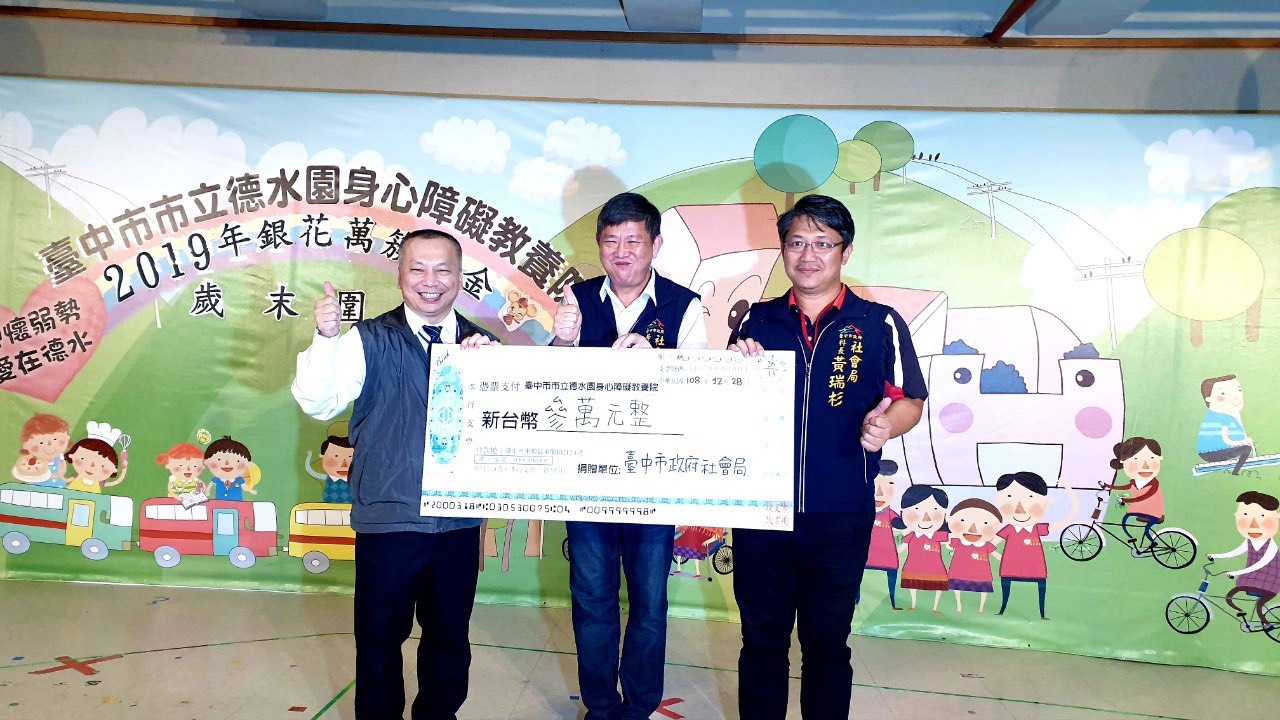台中市德水園身心障礙教養院今(28)日舉辦歲末圍爐活動,市府社會局長彭懷真也到場同樂,並致贈加菜金及發放春節小紅包,感謝機構夥伴辛勞,也期盼未來繼續與市府共同努力照顧身心障礙朋友。