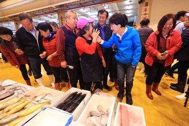 盧市長今早清晨4時30分抵達台中魚市場,逐一走訪各攤商,對海鮮如數家珍,包括原味香煎的白帶魚與肉鯽仔、適合三杯料理的魟魚、煮粥或乾炒都好吃的吻仔魚等。她也傳授「採買魚貨三要點」,第一看魚的眼睛亮不亮,第二摸魚的皮膚夠不夠光滑,第三則翻開魚腮看色澤是否鮮紅,藉此判斷魚貨是否新鮮。
