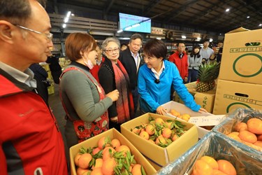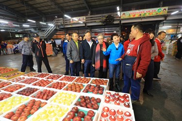 盧市長隨後轉往台中果菜批發市場視察。台中果菜市場表示,春節水果供應量每日平均約為400餘噸,平均交易價格每公斤約47至52元間。蔬菜因氣候穩定,供應量充足,每日平均交易量約在150餘噸,平均交易價格每公斤落在16-19元間。