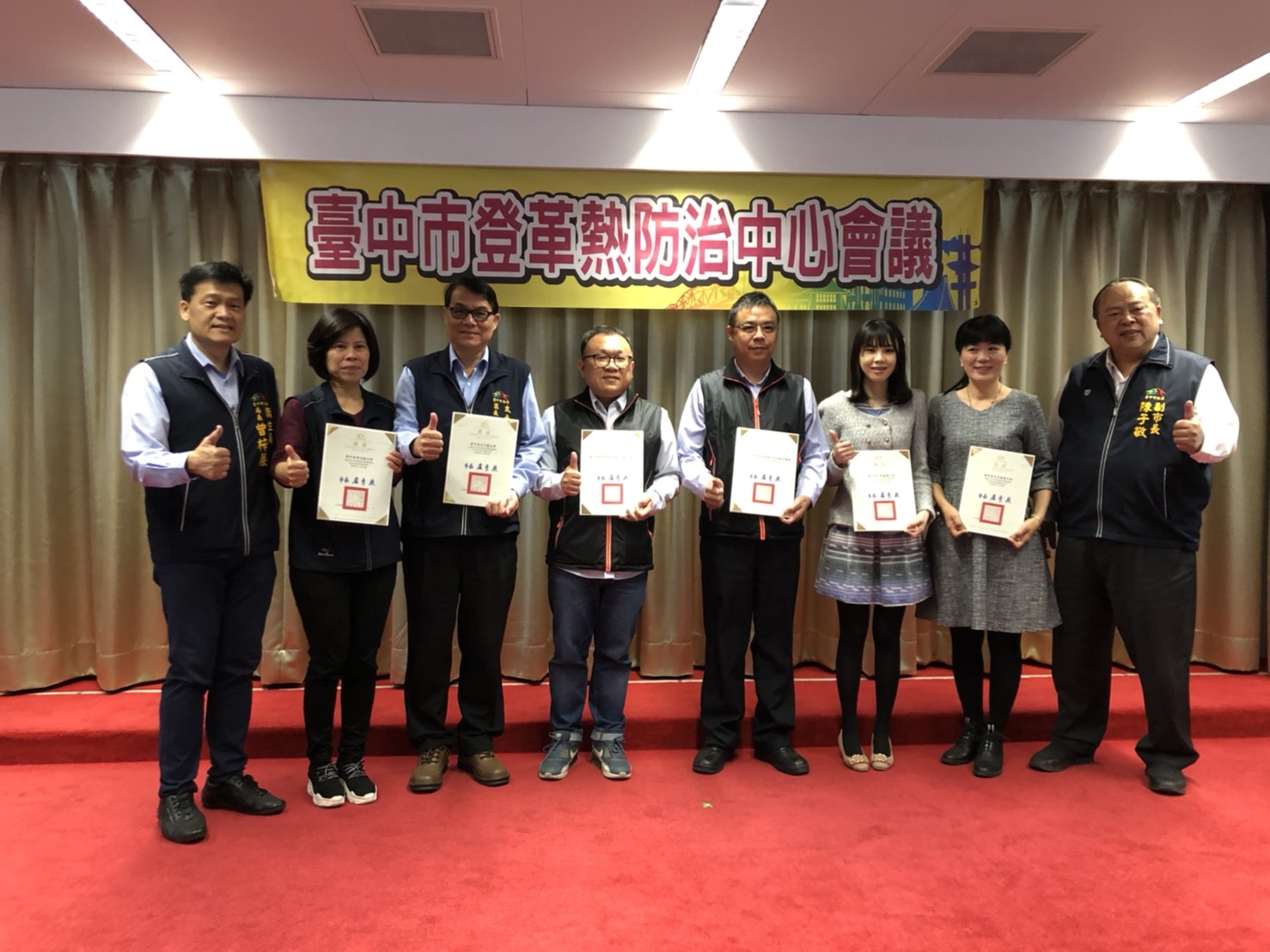 去年台中市登革熱防治有成,本土個案數從107年的113例減少到只有1例,市府今(17)日召開跨局處整備會議,規劃登革熱後續防疫策略,由副市長陳子敬主持,期勉今年持續努力,落實登革熱預防工作,現場也表揚3位及早發現登革熱個案的醫師及市府防疫有功的人員及團體。