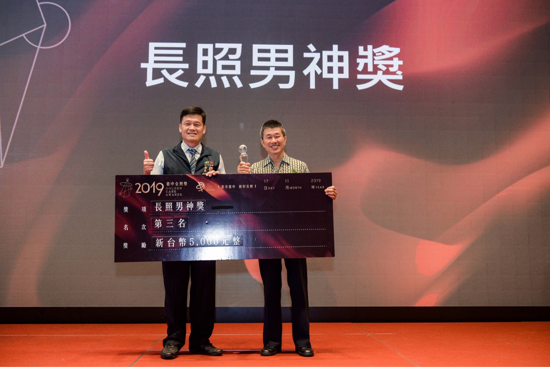 此外,為提升照服員榮譽感,市府更於107年首創專屬照顧人員「金照獎」,以高規格方式舉辦表揚活動,108年更特別增設「長照青年獎」、「長照男神獎」,鼓勵年輕及男性照服員投入長照行列,今年將持續舉辦,期望培養更多優秀的長照人員。