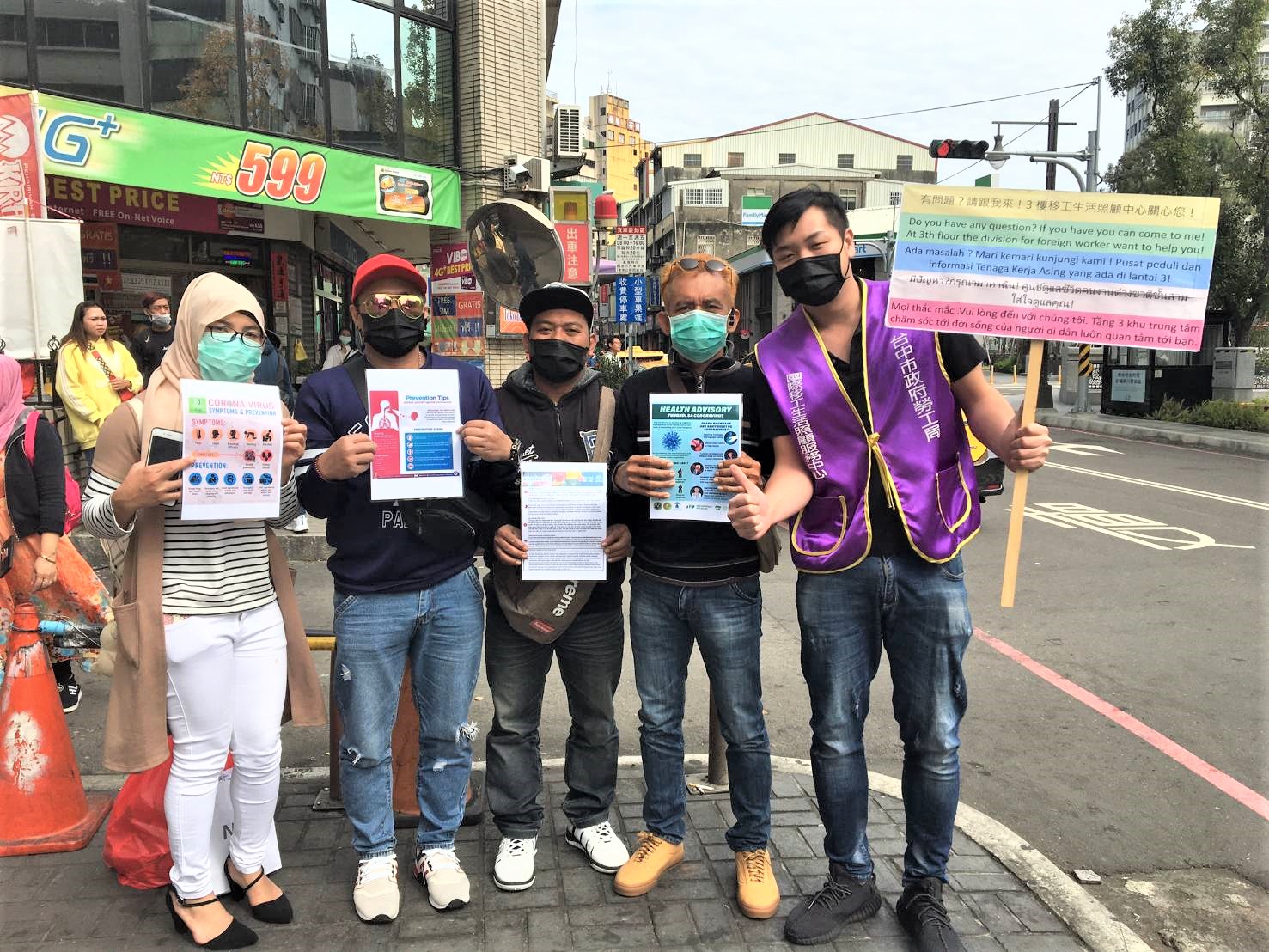 勞工局指出,為加強在台移工宣導防疫安全,該局及國際移工生活照顧服務中心於春節期間,已主動至移工較常出入之公共場所如東協廣場等處,關懷及宣導移工留意相關防疫資訊,也將多國語言(含英文、印尼文、越南文、泰文)的防疫注意事項,置於勞工局網站(https://www.labor.taichung.gov.tw/1460493/post)及東協移工四國臉書諮詢專頁供下載運用,並函請仲介公(協)會及各大工商團體,提醒雇主應落實移工防疫措施,並轉知防疫資訊。(2/5*7)*勞工局
